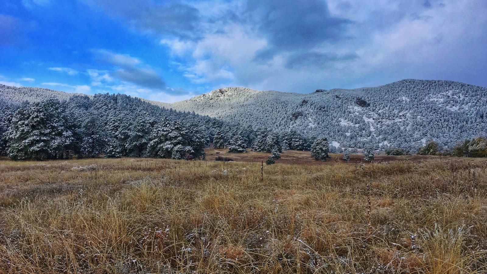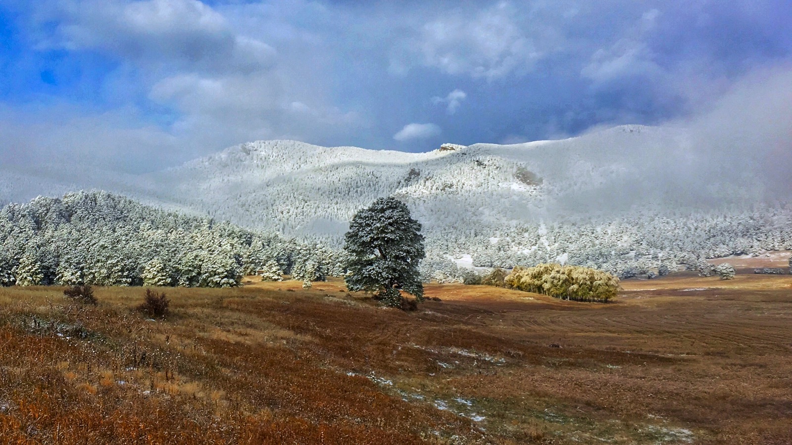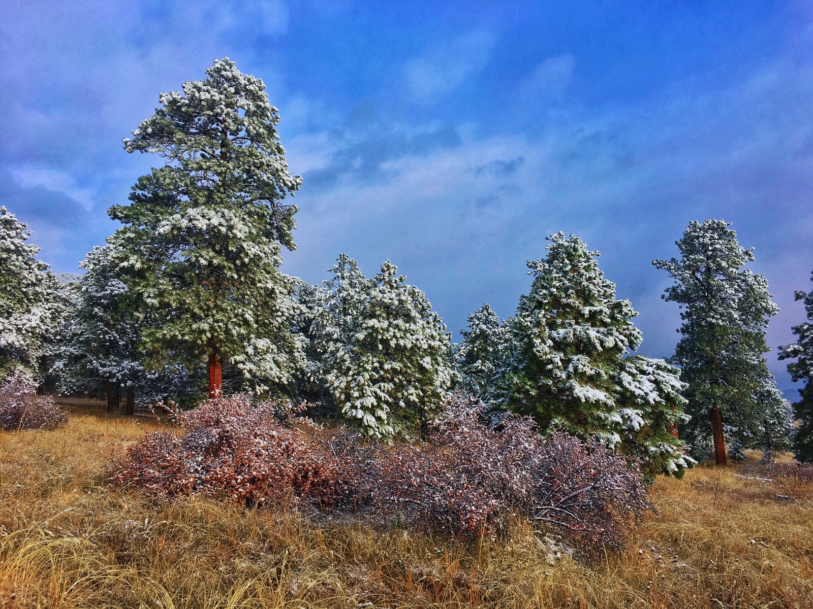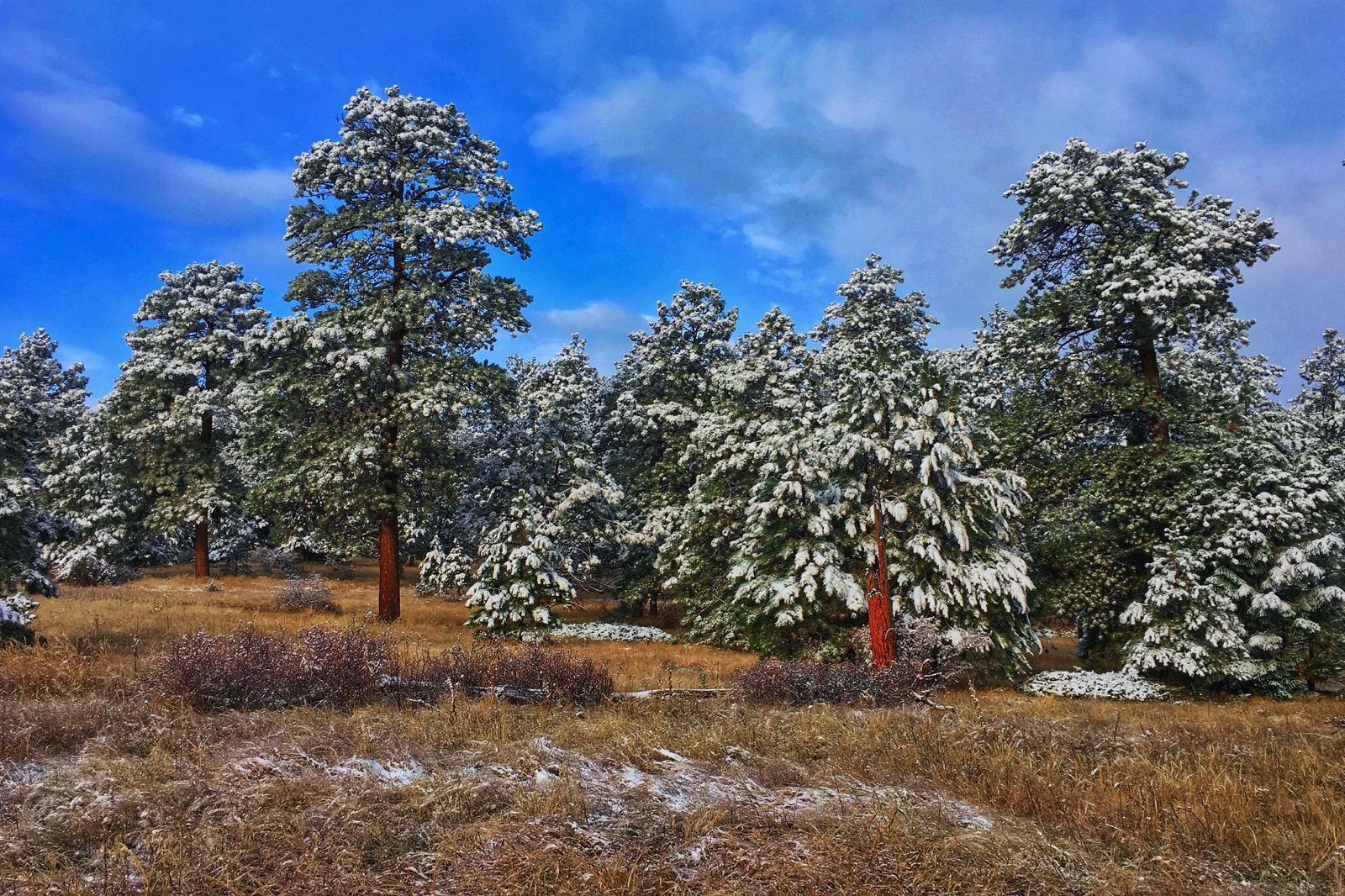 Sprawling below a new-blue sky, snow-spackled trees were scattered across an orange grassland. The slow-moving system had finally dispersed leaving the colorful landscape in a state of fleeting utopia.