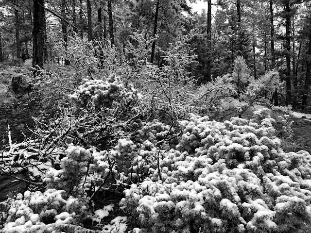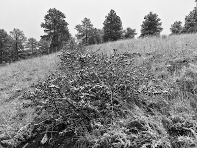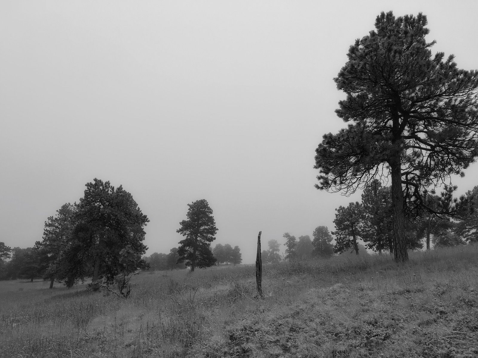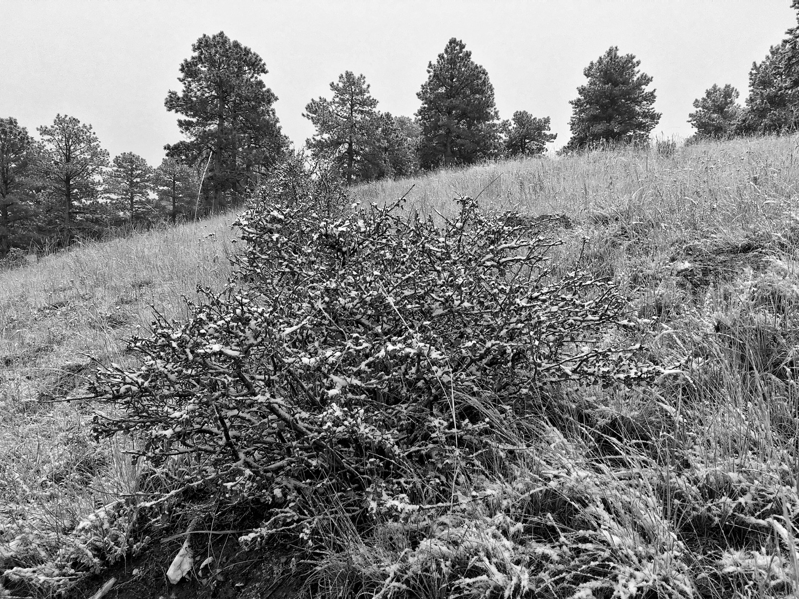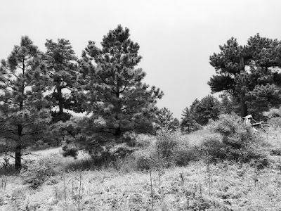 On an early October morn, the first snow in the golden foothills could only be described in a soft monochrome. Rooted into a rocky hillside, an elegant forest of lodgepole pine was distinguished by a silvery tone.
