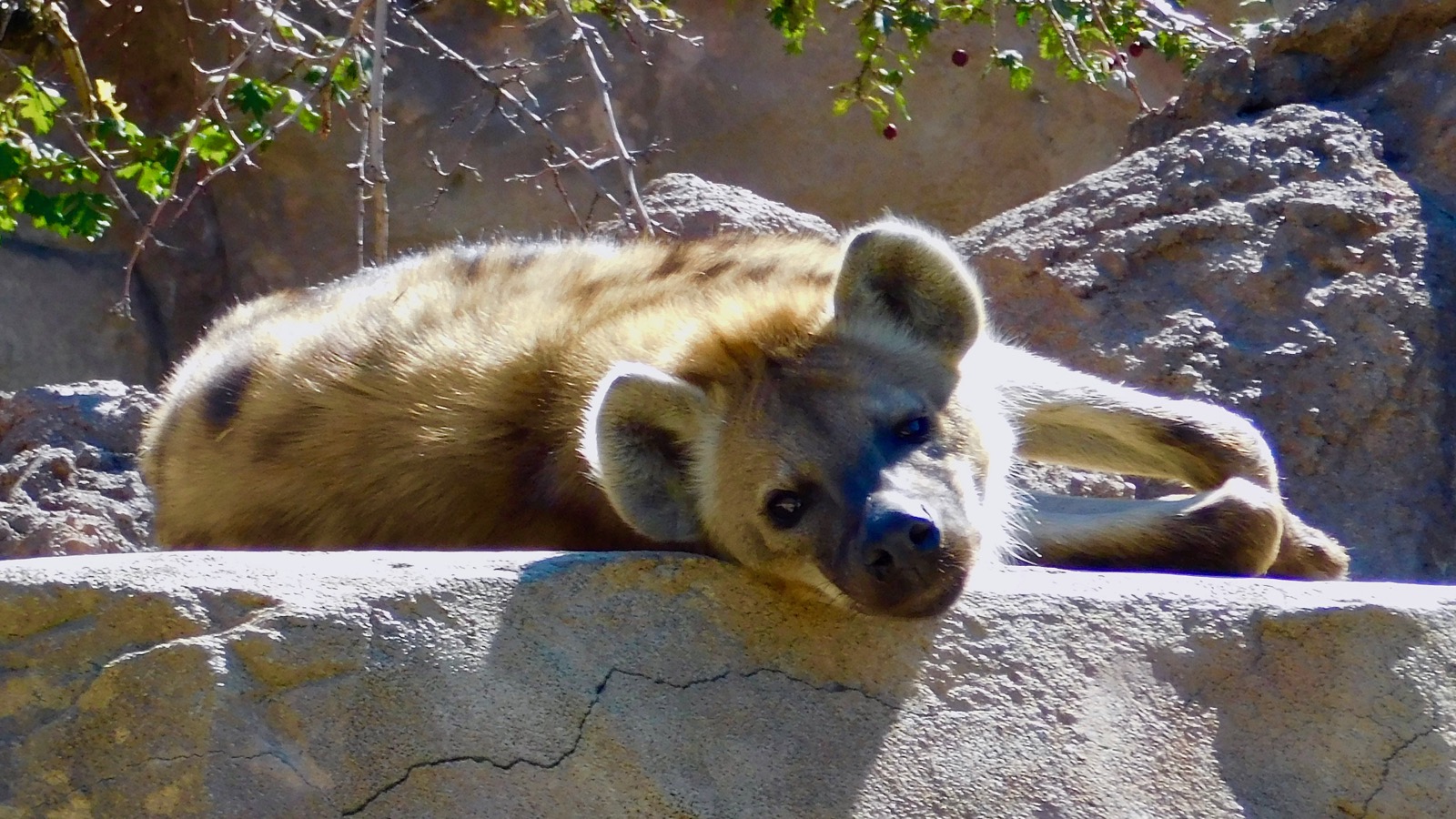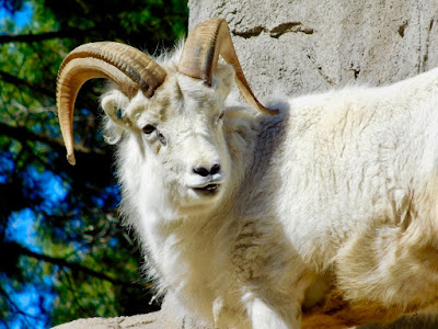 Just like the spotted hyena, many of the creatures were content to bask lazily in the warm sunshine. A Dall sheep ram seemed happy while holding the high ground just above a cud-chewing, reticulated giraffe.