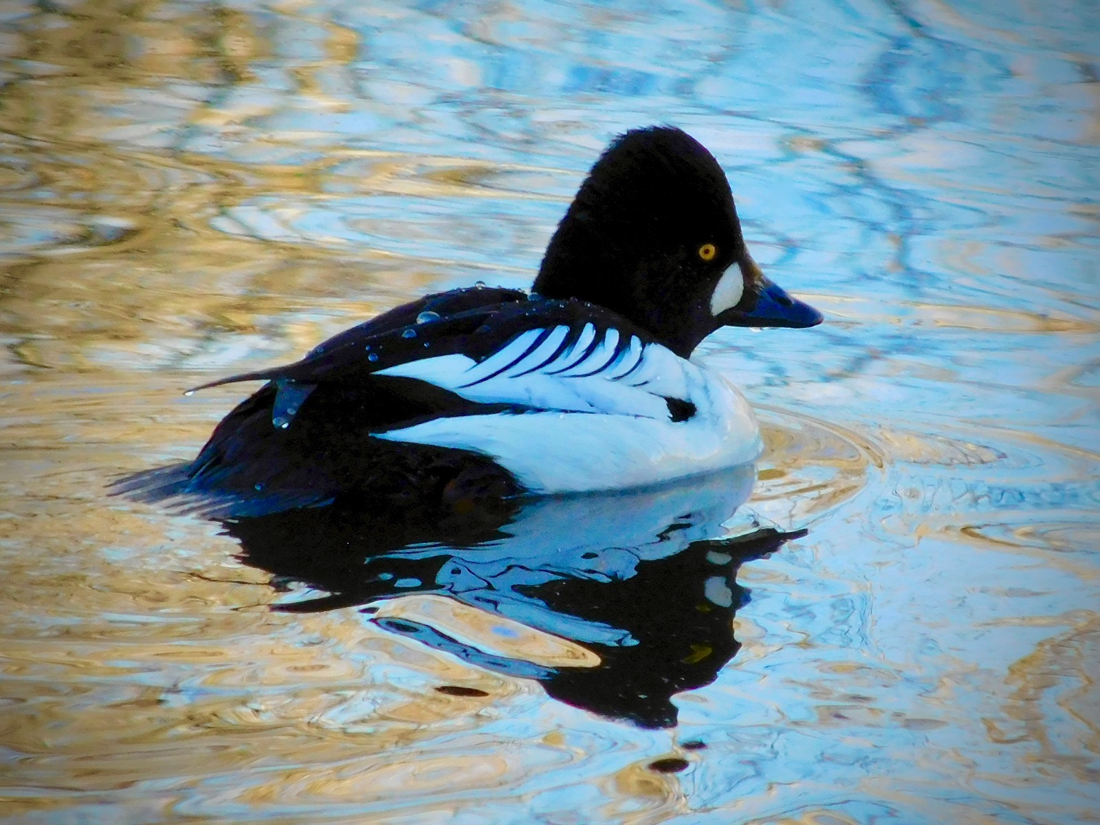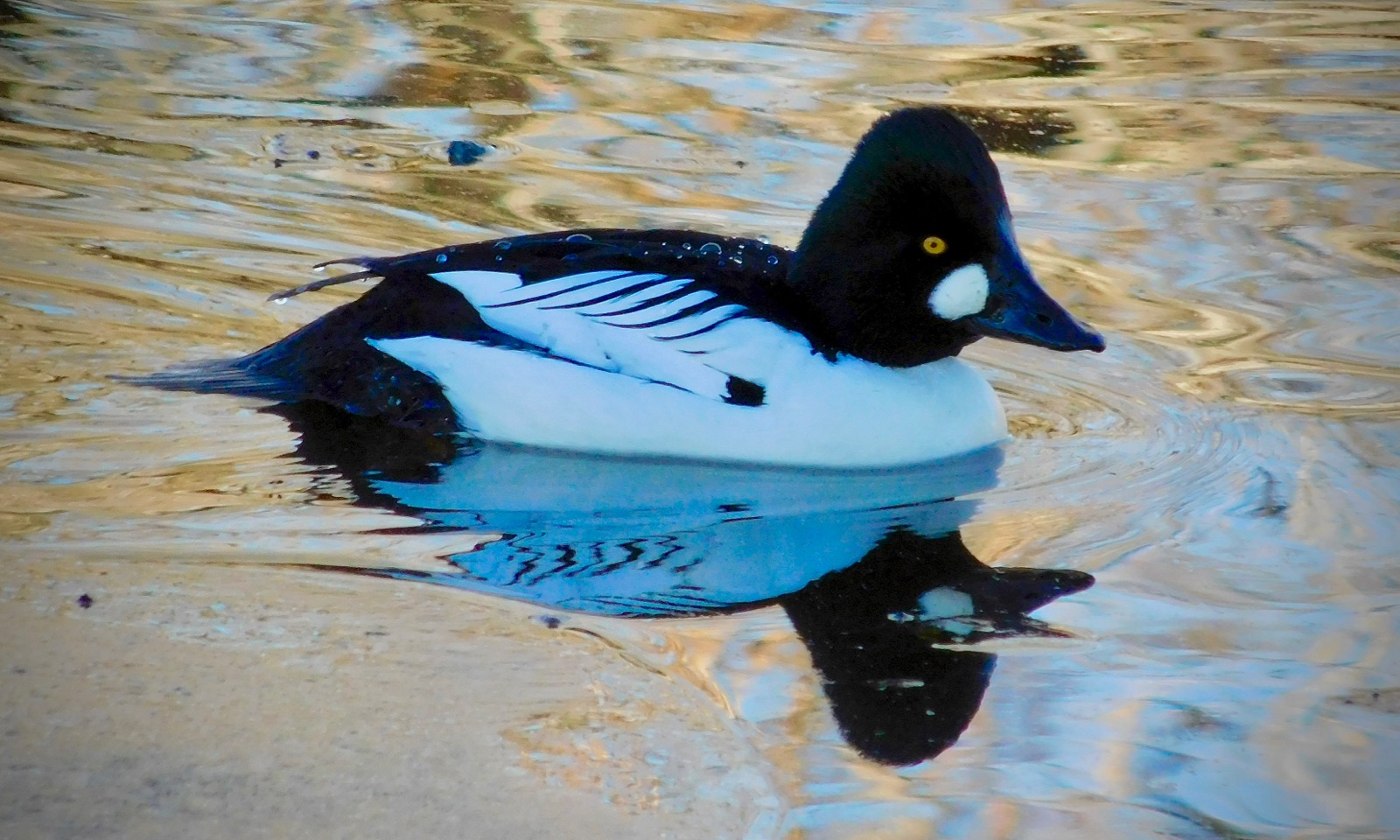 Most active of the bunch was a goldeneye that kept diving into the frigid water, disappearing for several seconds at a time. We weren’t expecting to see much wildlife on such a cold, winter day so we were surprised to encounter so many birds at such a small, urban lake.