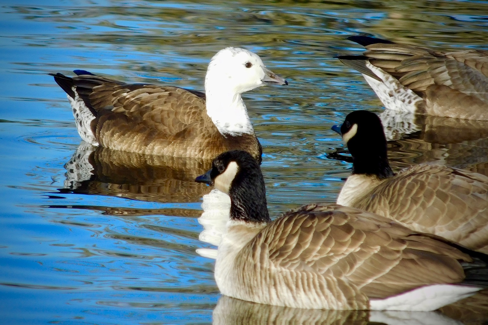 Canada Geese were shown in force, far outnumbering the rest of the birds. Conspicuous amongst the herd, a few white-headed floaters must have been hybrids of the Canada and the snow with their speckled plummage glittering in the evening sun.
