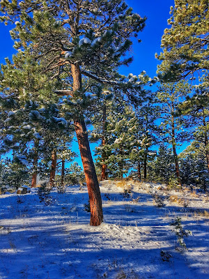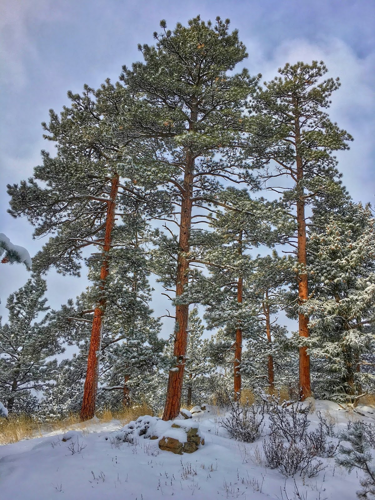 Ponderosa pine is handsome and it gets big. To be in a stand (a foresters’ term) of big ponderosa with their orange plates of thick bark shining in the sun is akin to being in a grand cathedral - better. Ponderosa pines have long dark needles wrapped in bundles of twos and threes. Those dark green needles get even darker in winter. They are the source of the name for the Black Hills of South Dakota. It’s a good thing ponderosa is so striking to see because its name sure doesn’t give any hint of what it’s about.