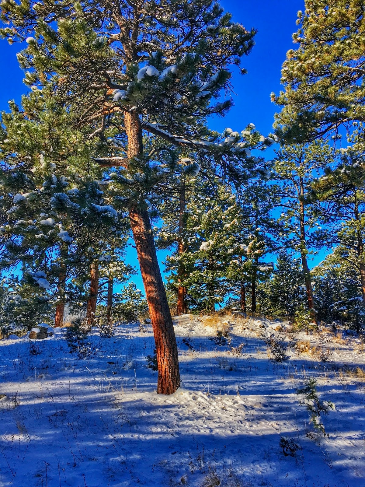 Ponderosa Pine, its trunk a puzzle of orange plates,
