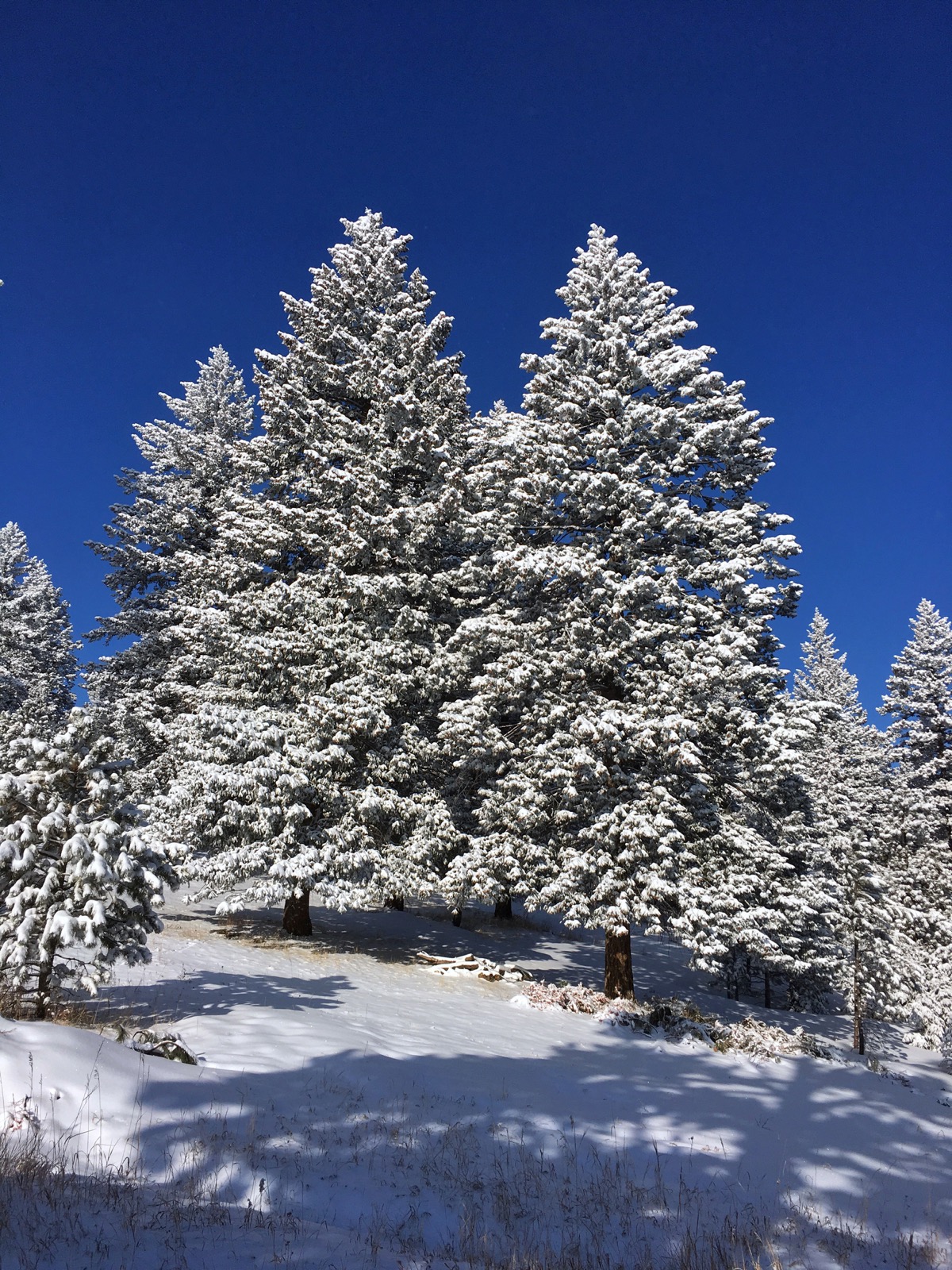 Bright sunlight beamed through the clear, thin air while thawing the bone-chilling cold. The distant mountains were dusted white and set against that pale landscape, the sky was the deepest blue imaginable.
