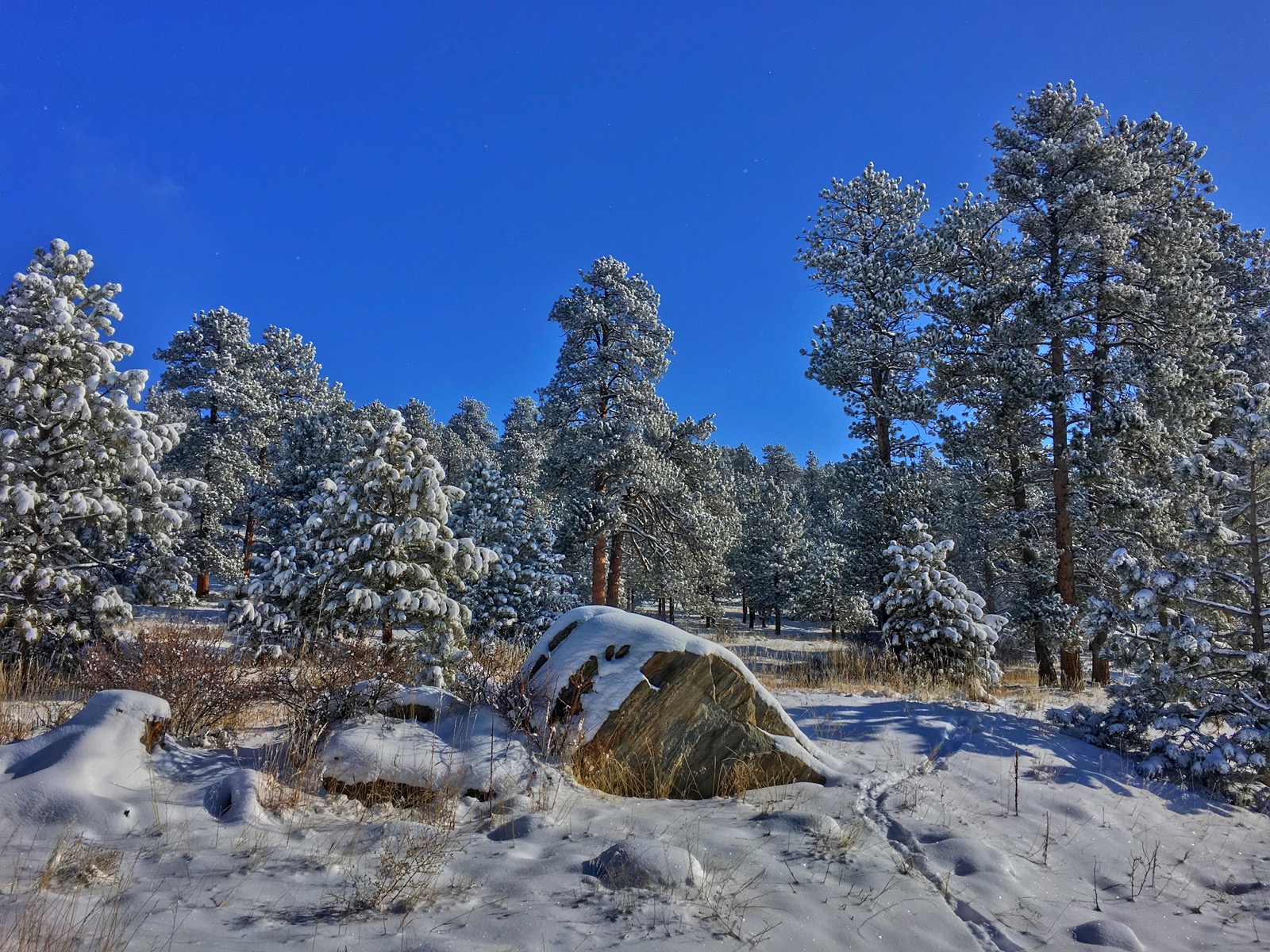 The old-growth, ponderosa pine forest is a steadfast fortress of solitude. The uncultivated woodland is a barrier between an urban environment and the vast Rocky Mountain wilderness beyond.