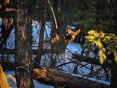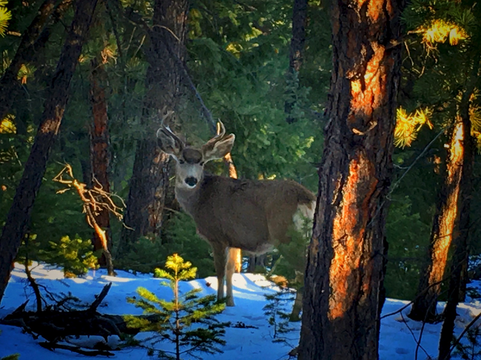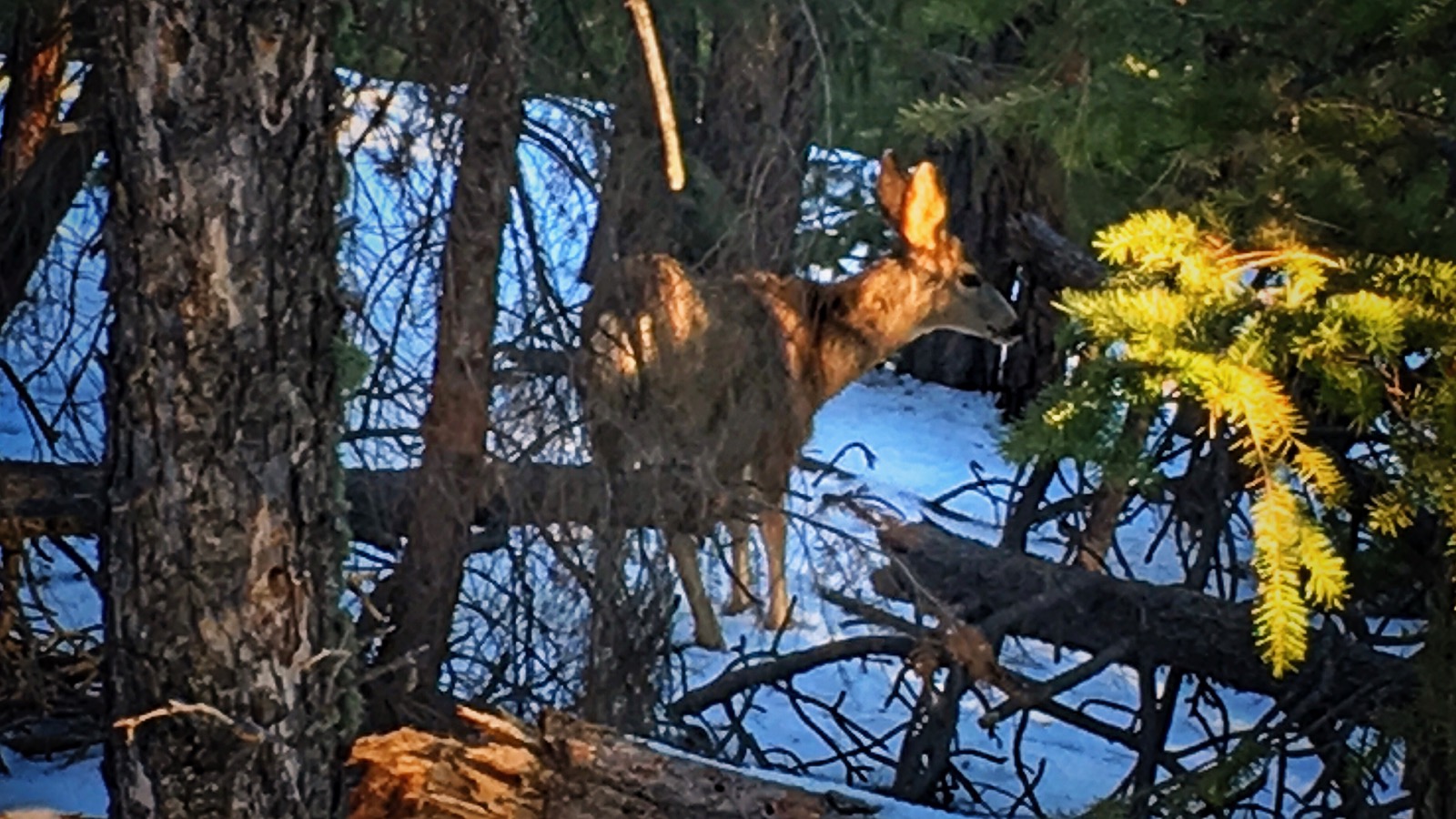 On a cold, winter morning while traversing a snowy hillside, a couple of hidden creatures was revealed by the day’s first light. A young doe and buck were foraging so quietly in the shadows that they could have been easily missed.