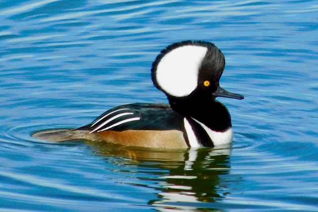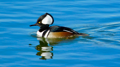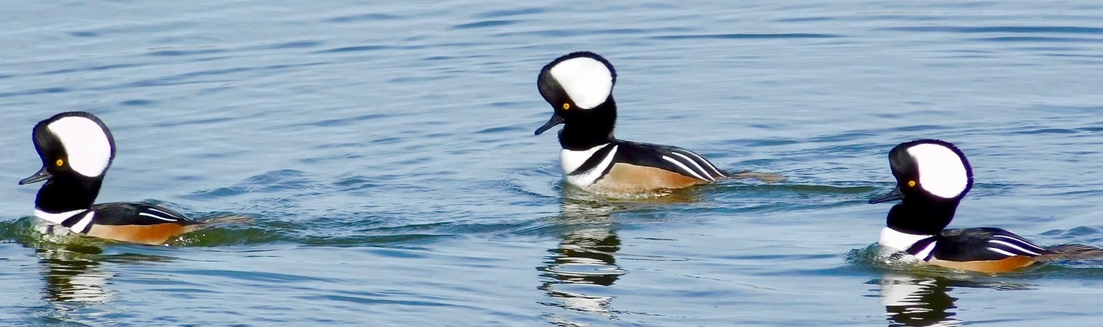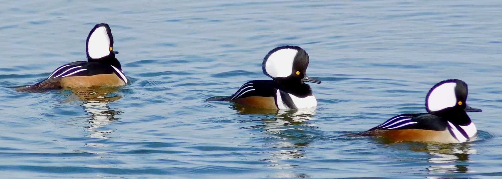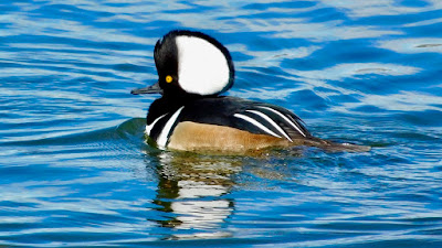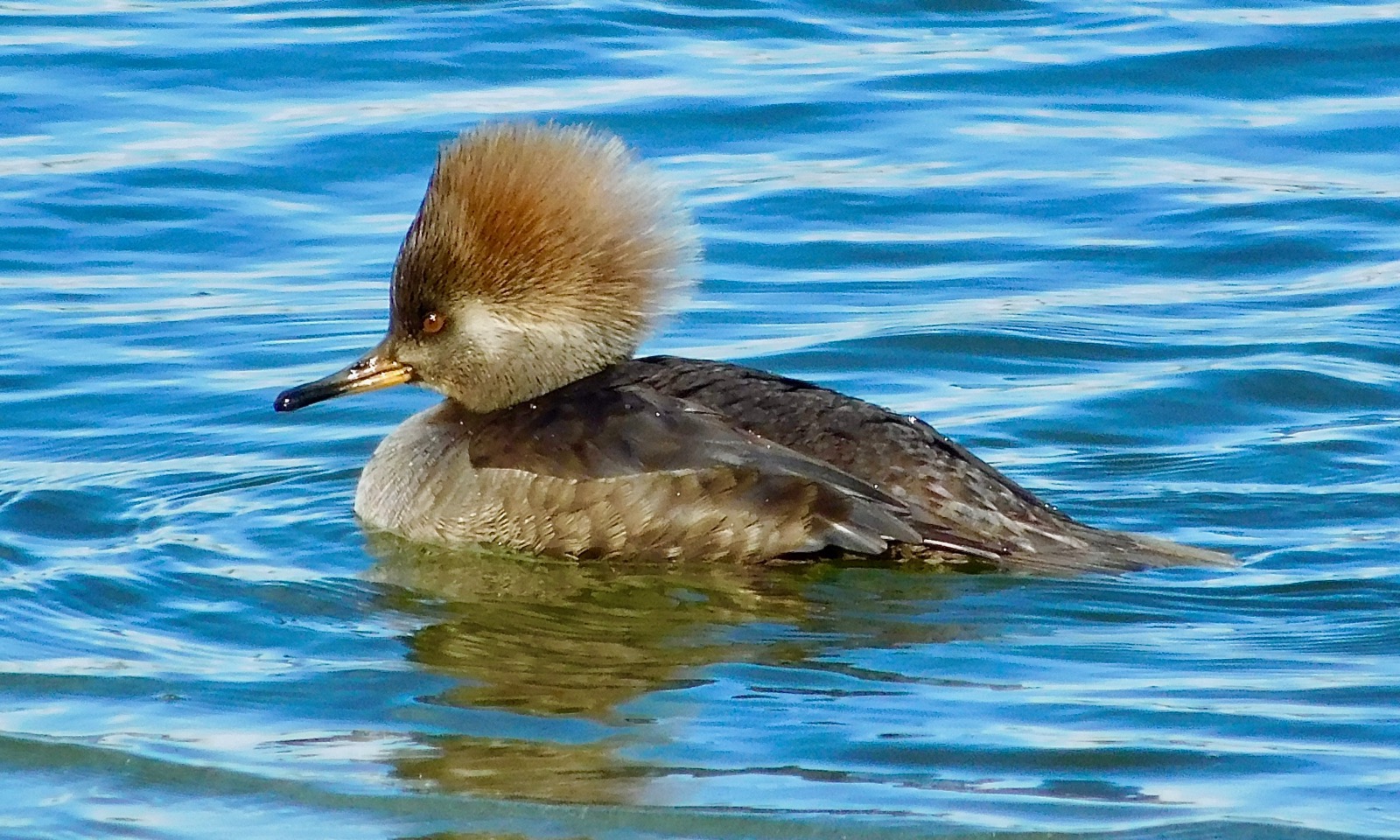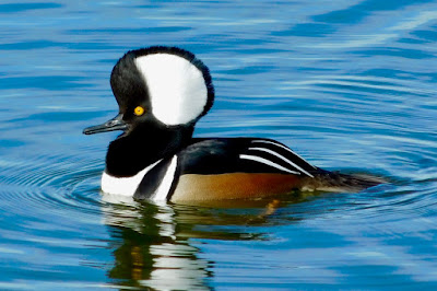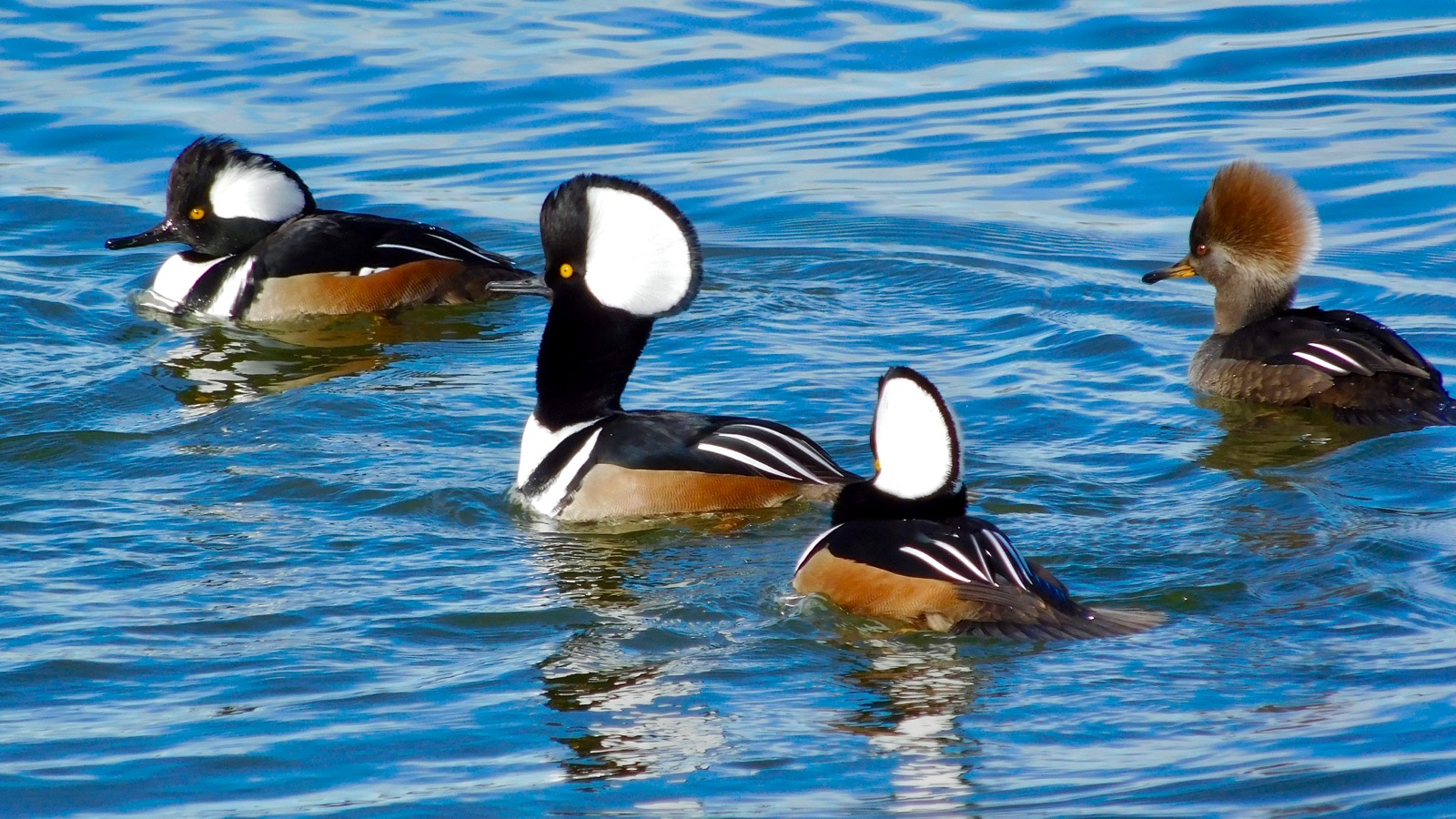 The hooded merganser is a diving predator and the only duck that specializes in capturing fish. They’re able to track down food by sight because their eyes are specially adapted for unsurpassed underwater vision.