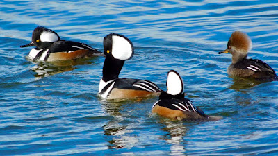 The hooded merganser is a secretive creature that prefers to live in a secluded woodland somewhere near a small pond or stream. A mated pair nests in a cavity of either a live or dead tree where the female lays a clutch of seven to fifteen eggs.