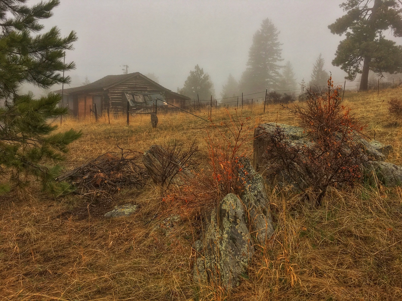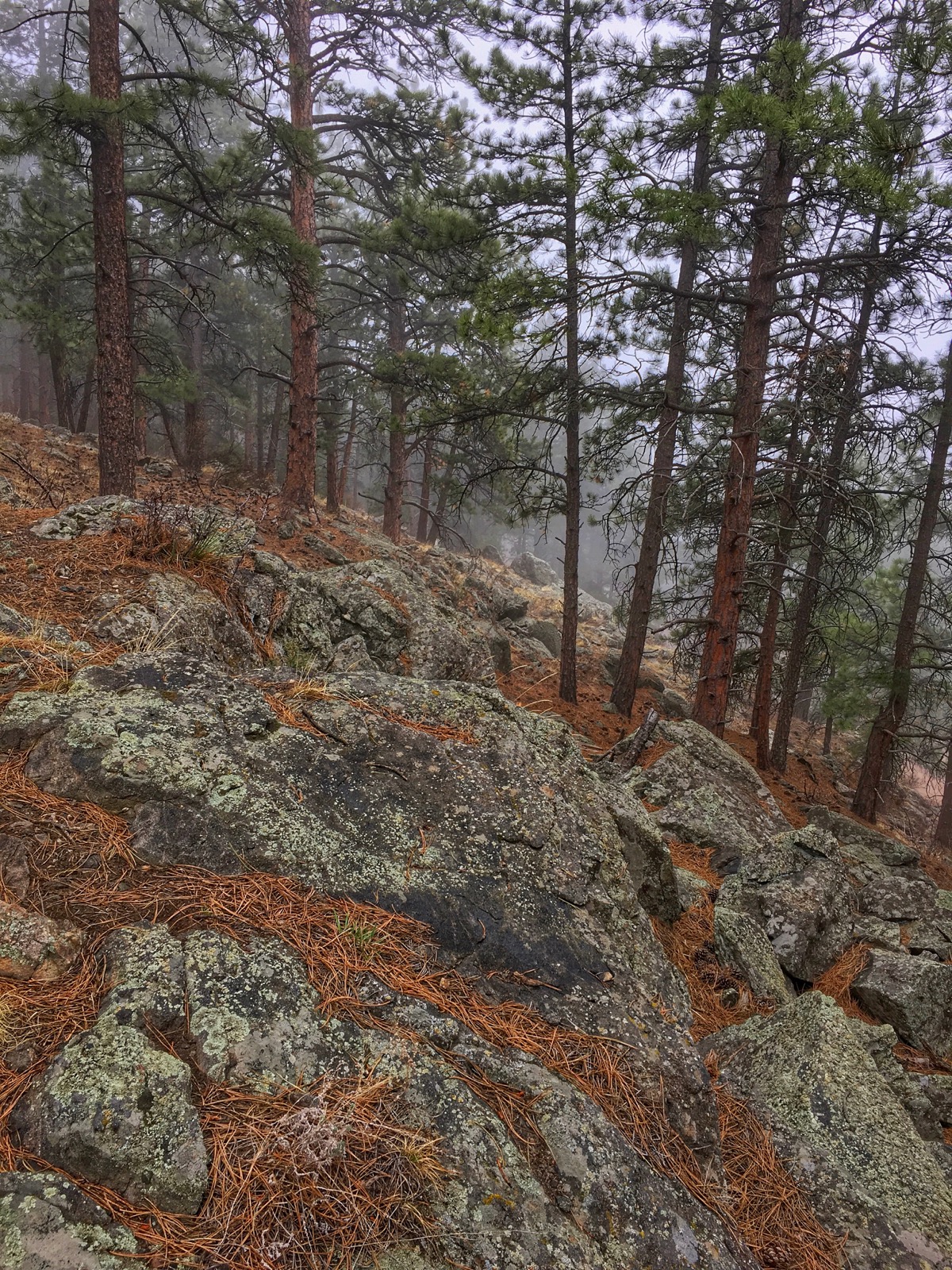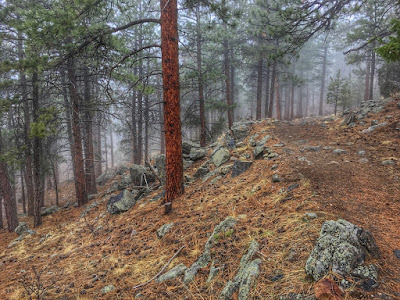 A classic seasonal storm swept across the foothills, lengthening an unending stretch of cold and wet. Dawn broke gray and murky as a thick vapor of fog permeated the pine forest, evoking an eerie atmosphere.