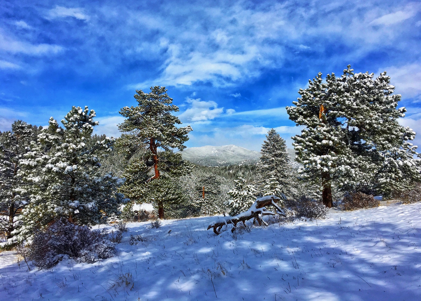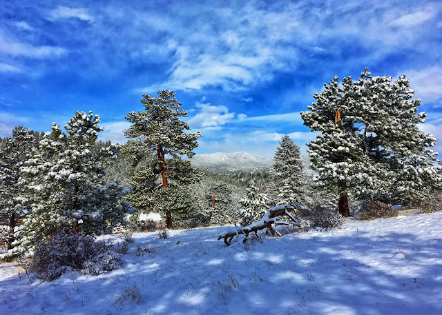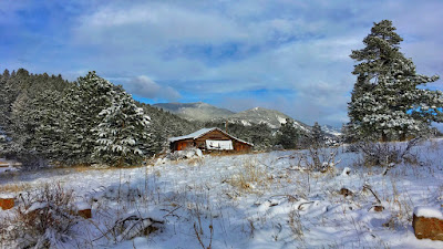 By the morning after, powder blue skies began to reappear and that same old cabin came into crystal clear view. The deep forest was a dazzling display of dappled light and silvery shadows.