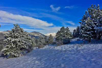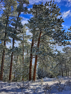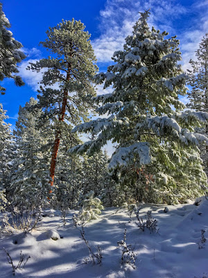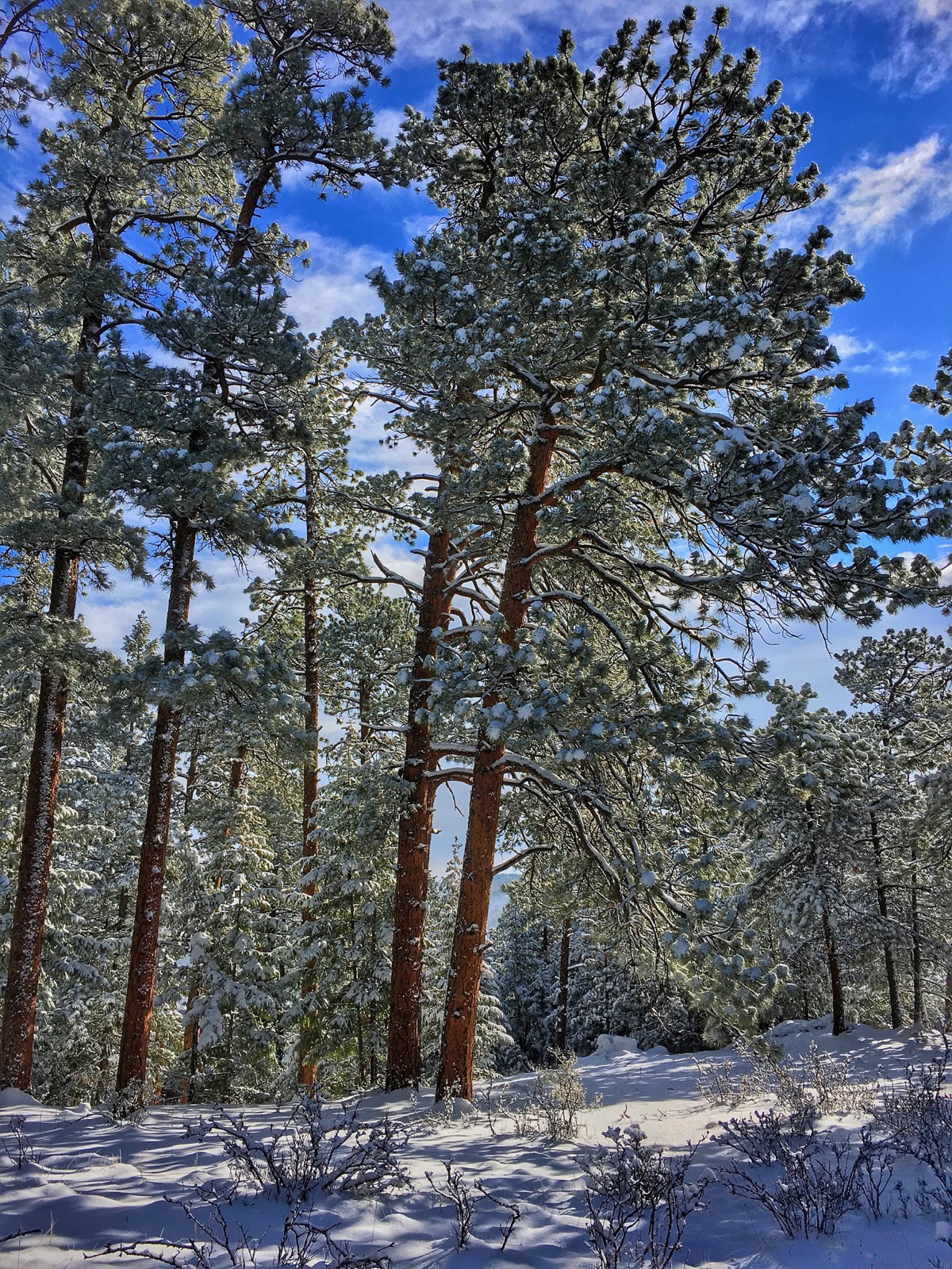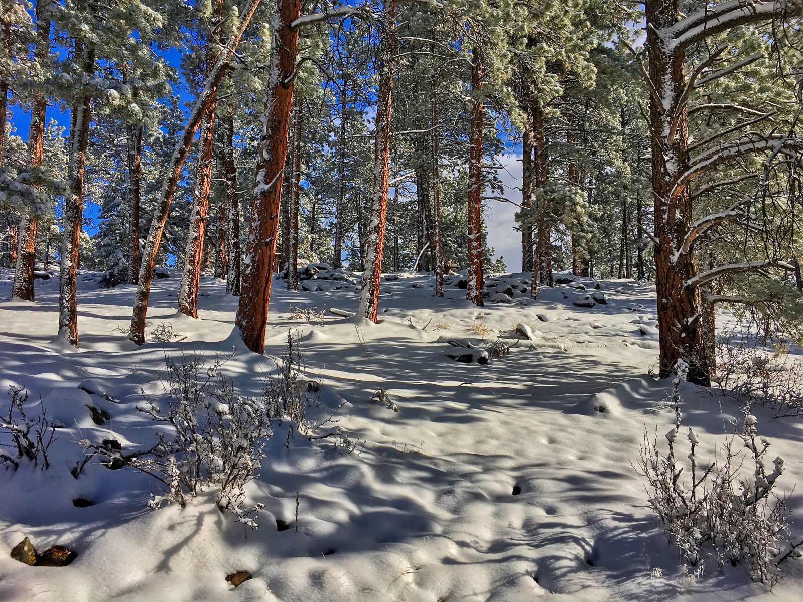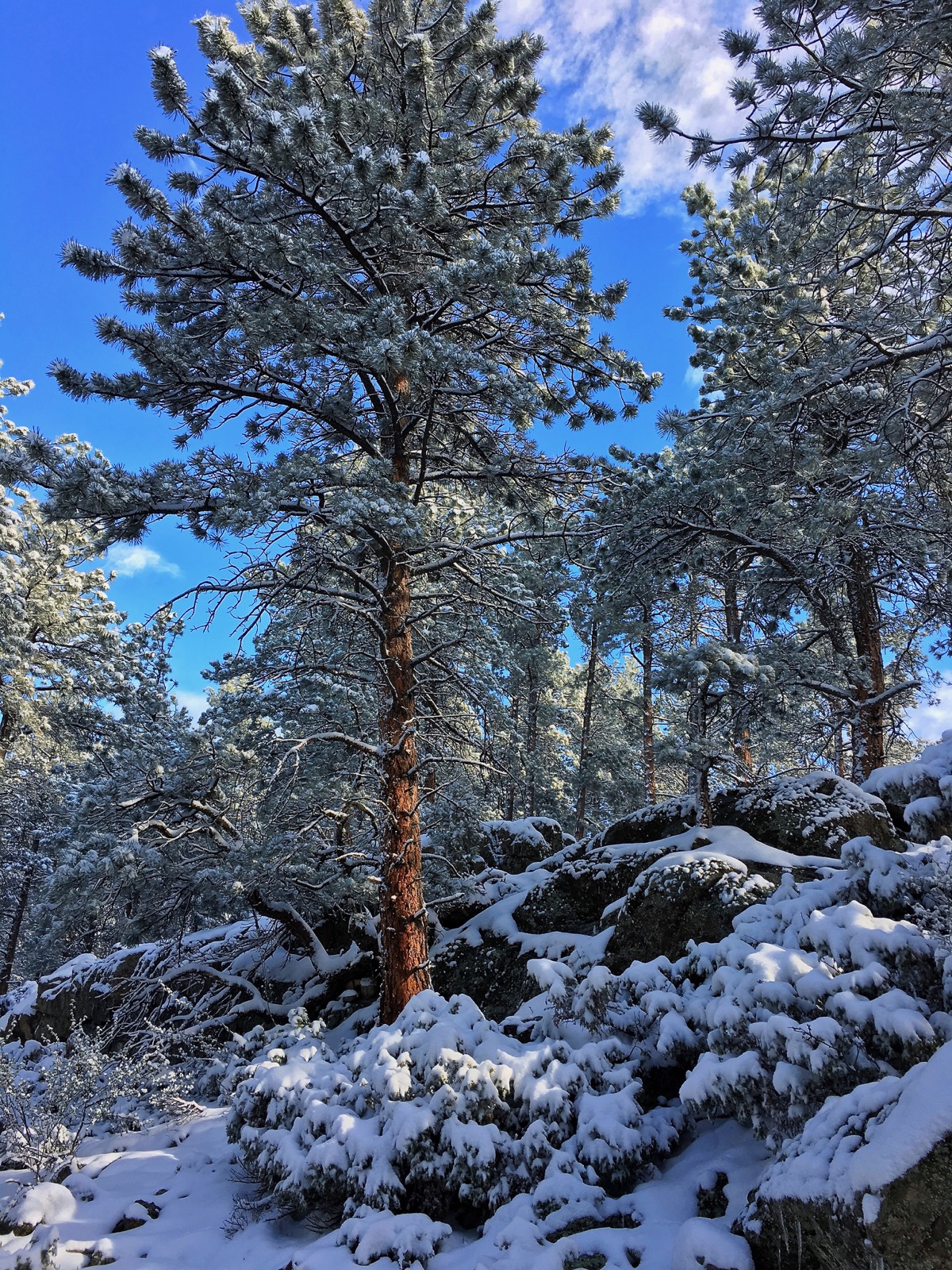 | Frosted pine, cool shadows and cobalt skies |