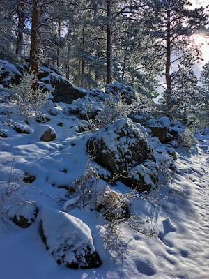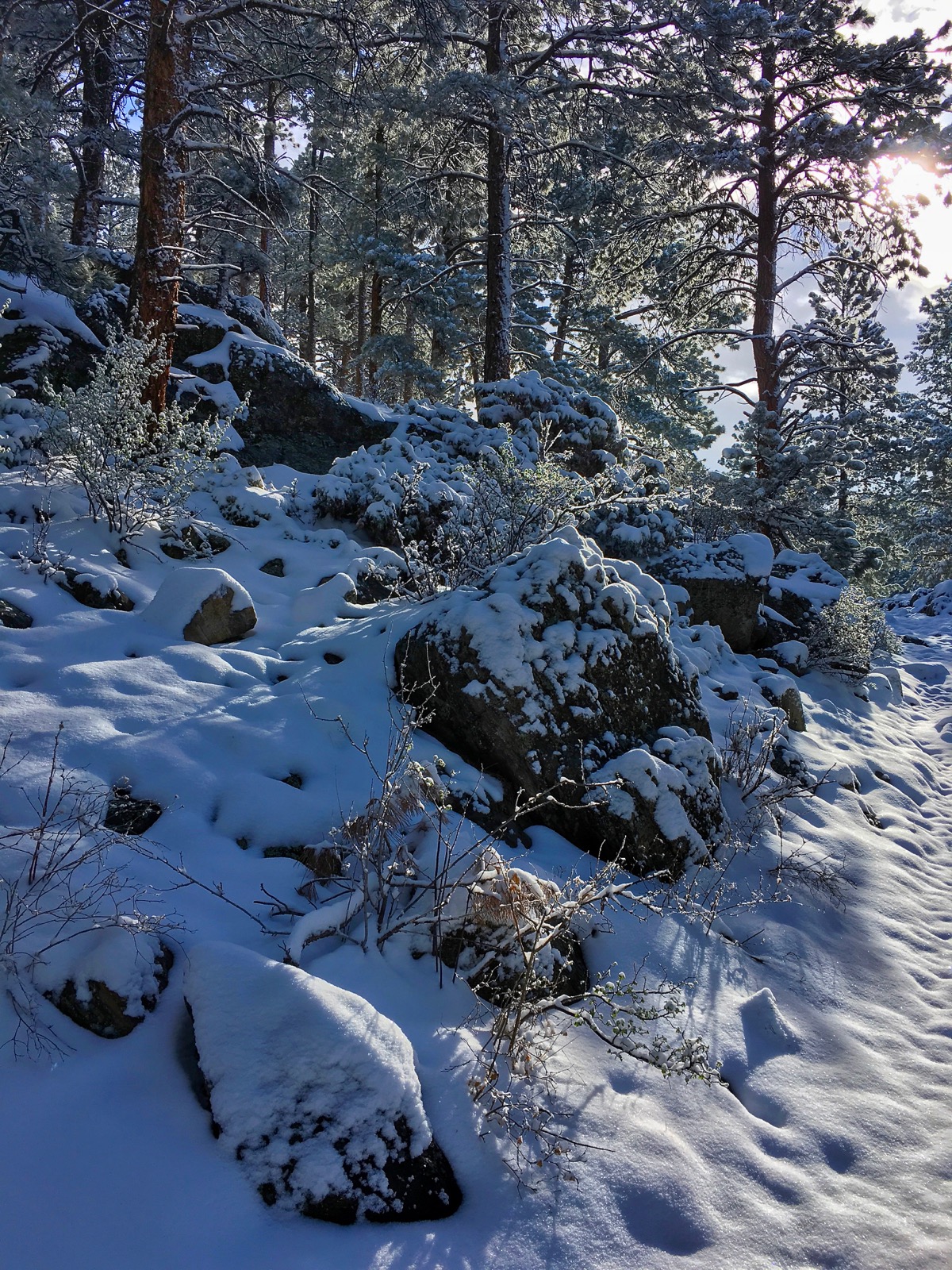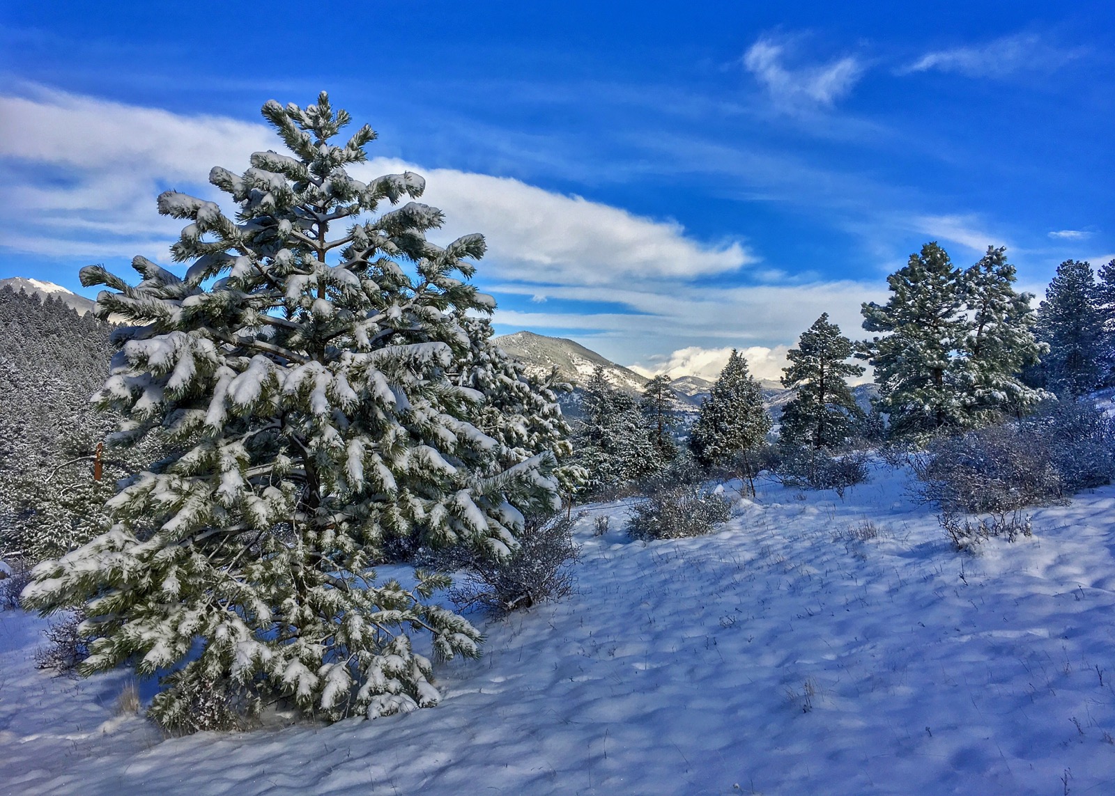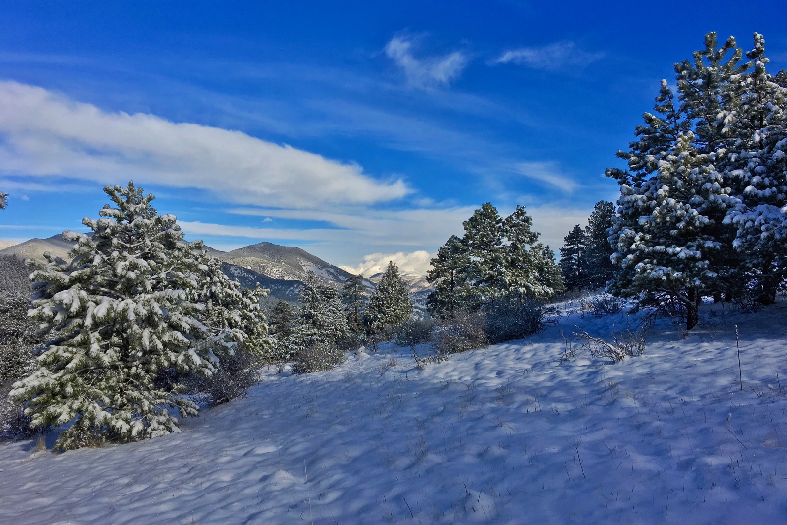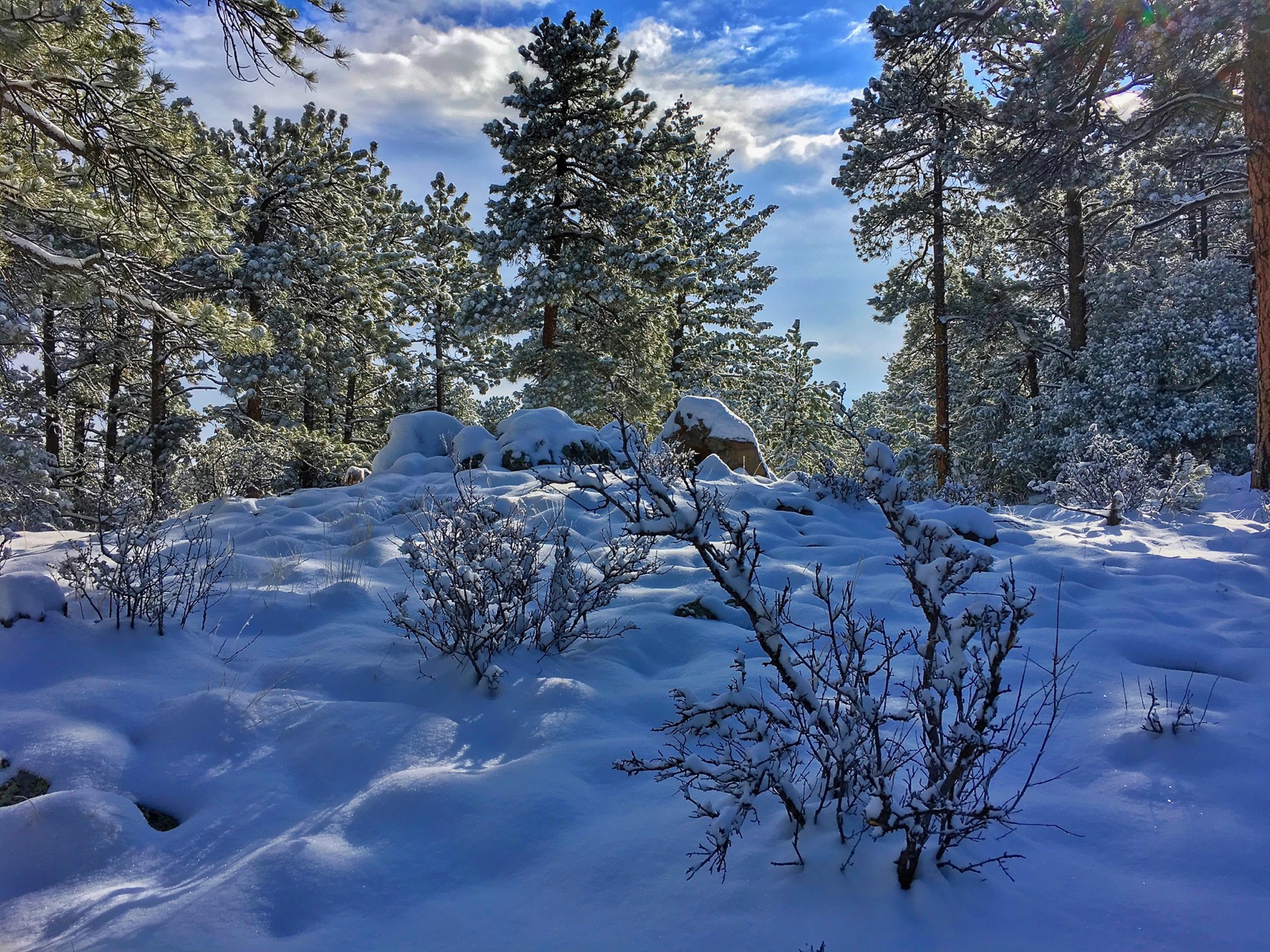 | Frosted pine, cool shadows and cobalt skies |