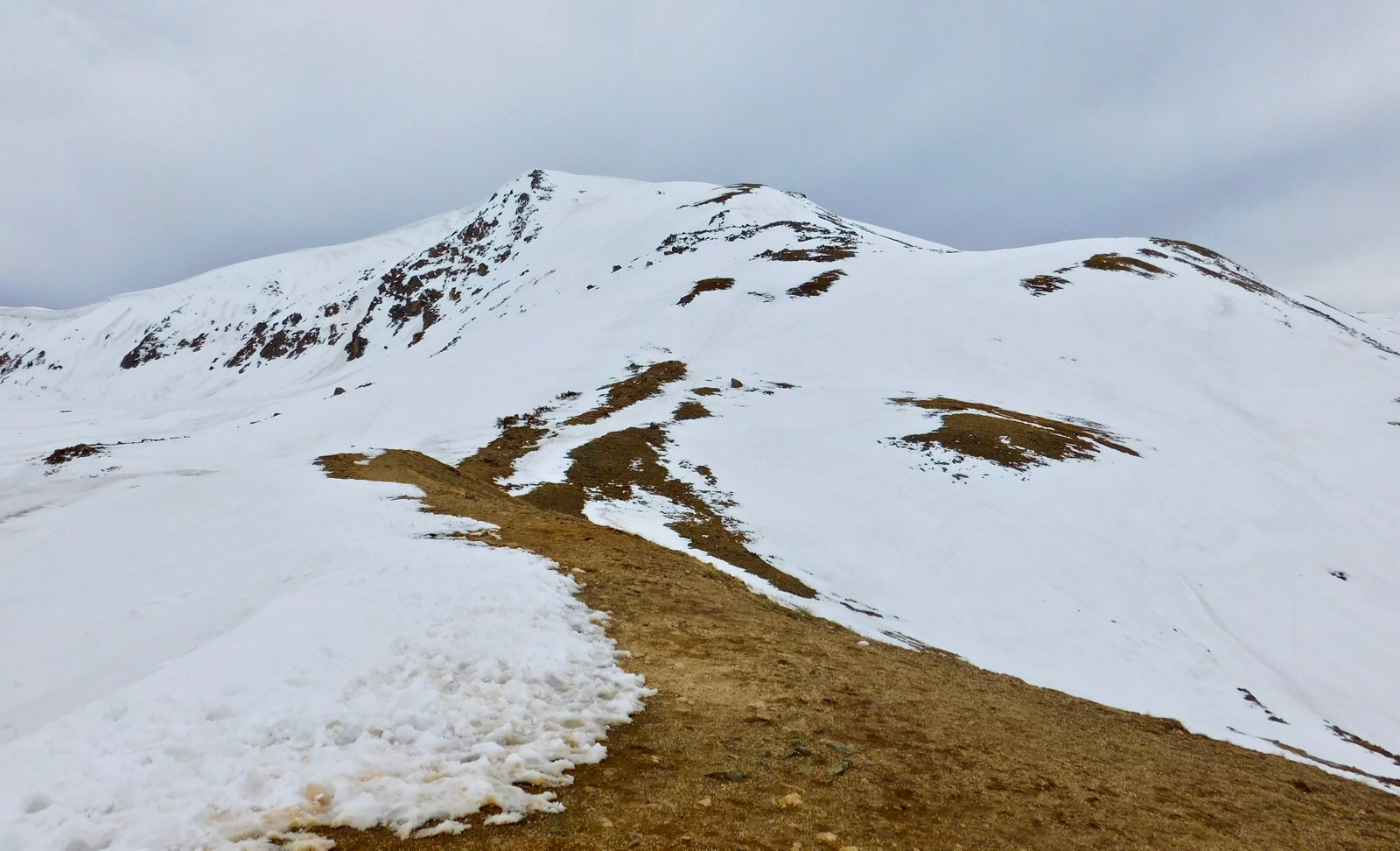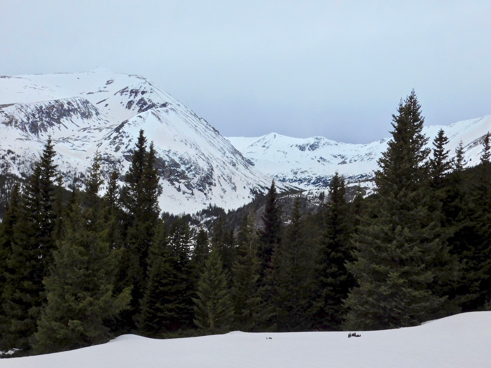 It’s late winter in the raven’s domain where rock, snow and ice dominate this harsh environment. Hoosier Pass rises sharply below steel-blue skies while a steady breeze pours down through the forbidding quagmire of dark peaks.