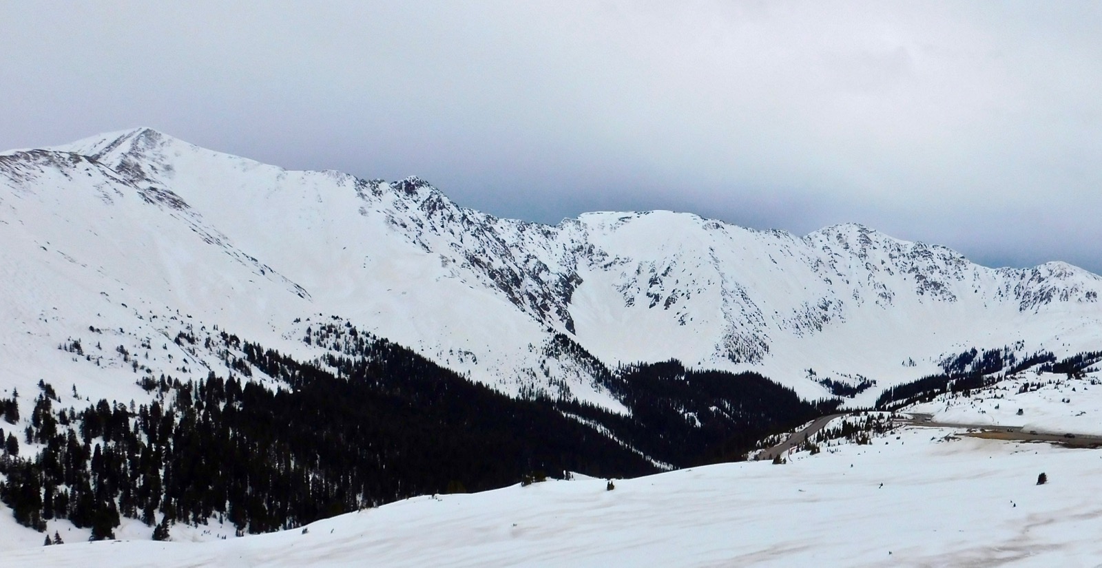 Winter is dug in deep here where a ferocious wind blasts your entire being with jagged pellets of ice and snow. Loveland Pass is a harsh environment blessed with panoramic views that include several, legendary mountain summits.