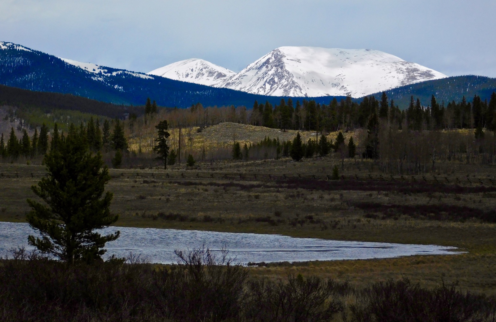 Kenosha Pass (10,000 feet) is a wide open space famous for its charming aspen grove and being bisected by the untamed Colorado Trail. The centerpiece of this grassy plateau has to be the sparkling blue lake that reflects the ring of white peaks that surrounds it.
