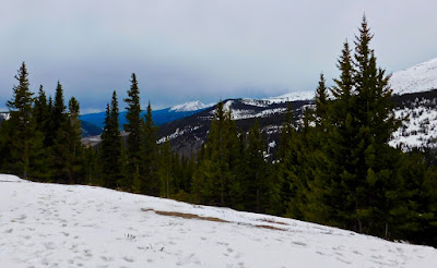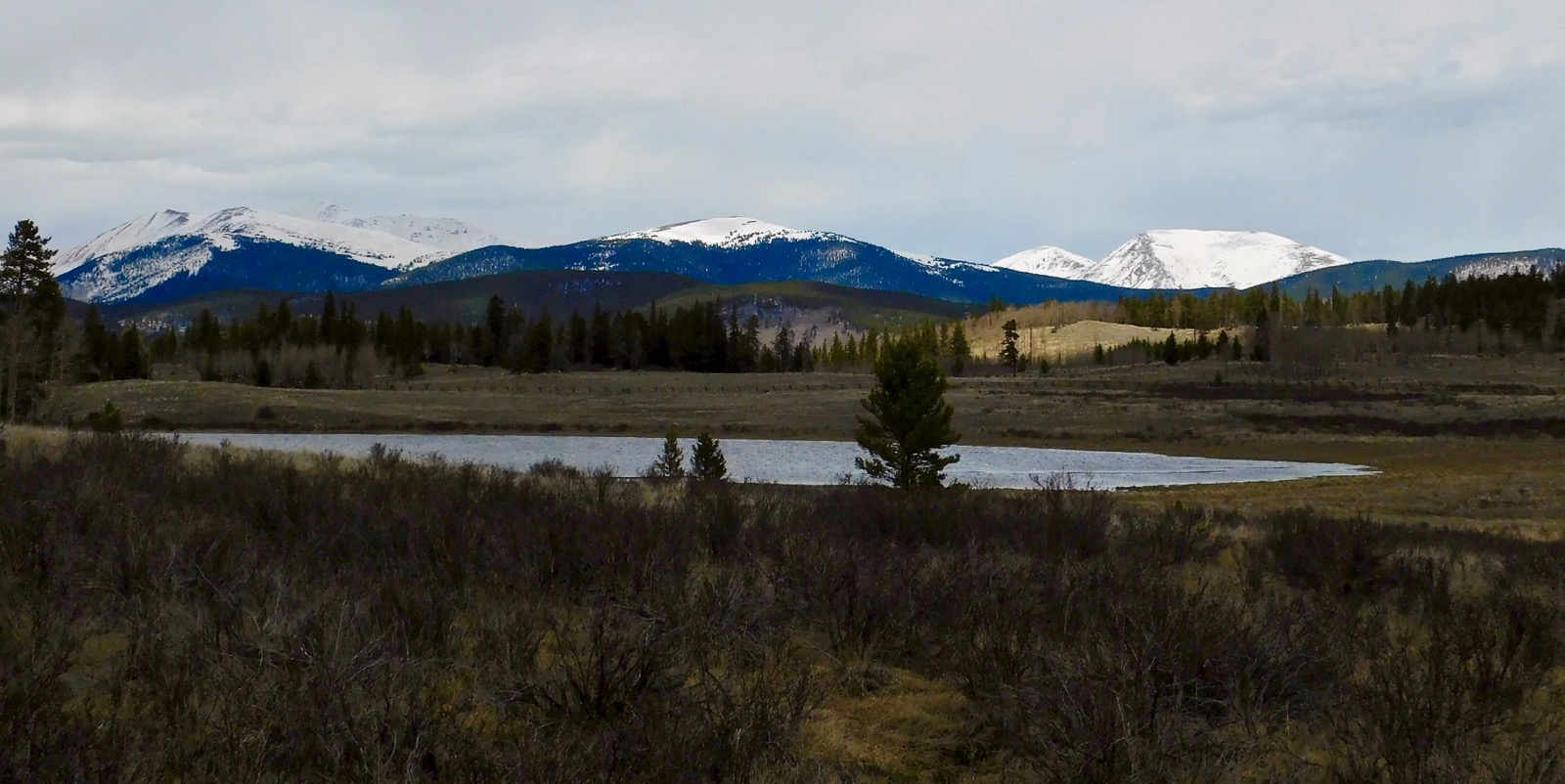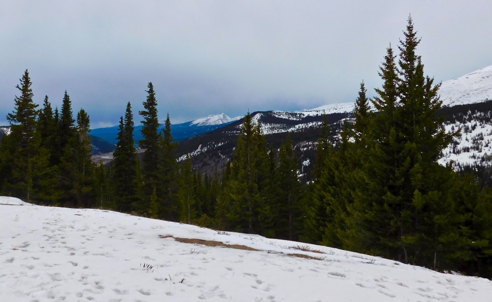 As it’s early spring here, the cool temperatures create persistent snow drifts that are scattered across the muddy earth. Kenosha Pass descends abruptly while forming the steep eastern boundary of the spectacular South Park meadow.
