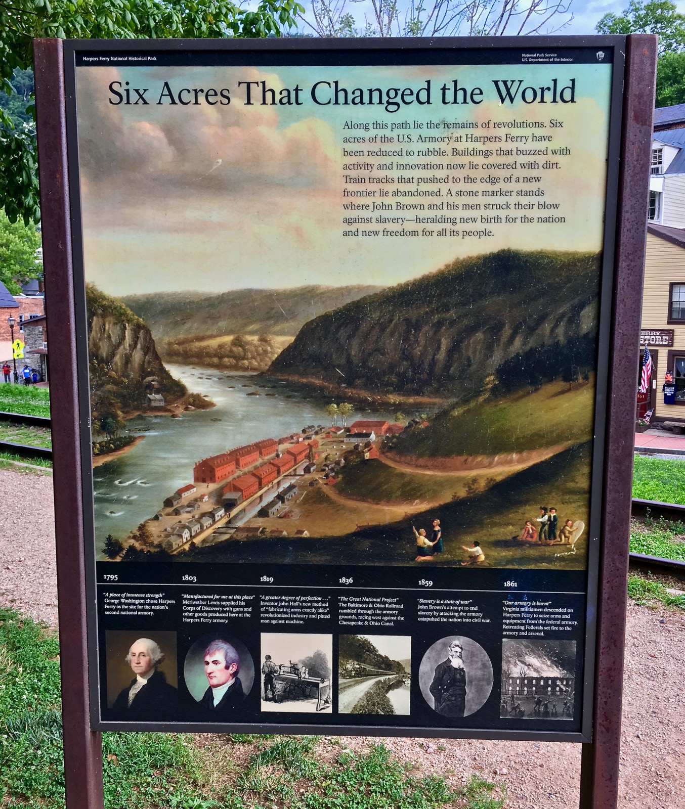 Washington eventually chose Harpers Ferry as the site for a new national armory and by 1796 the U.S. military arsenal was established. Merchants, mechanics and immigrants flocked to the western Virginia township because of the commerce generated by the machine shops and rifle works factories.