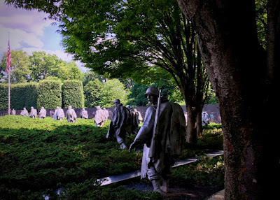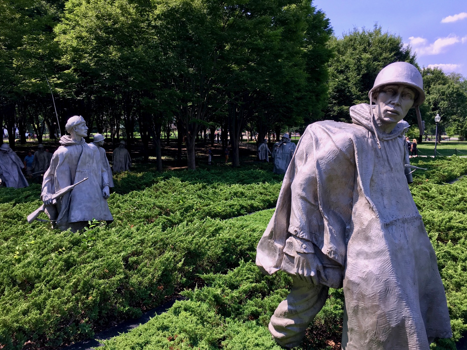 The Korean War Veterans Memorial was especially heartrending because my father-in-law fought in that war and after he made it home, he refused to speak about his experiences over there. The statues depicting a platoon of American soldiers wearing raincoats while marching through dense vegetation was a powerful expression of courage under fire.