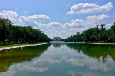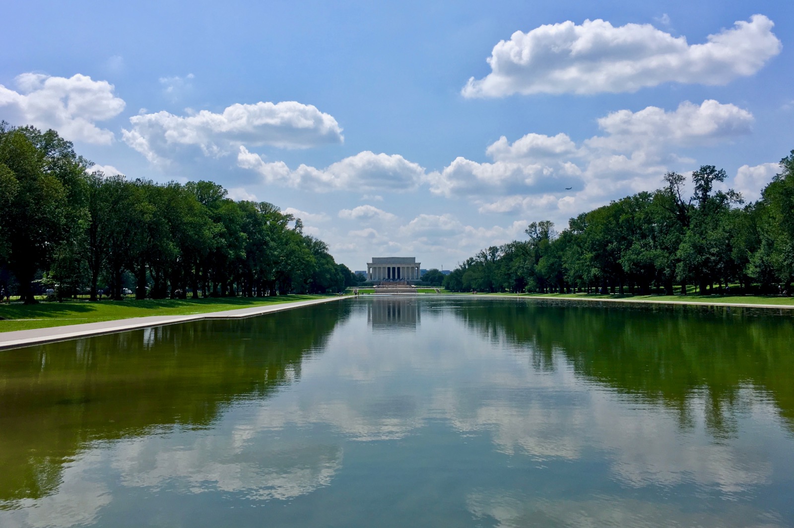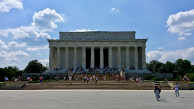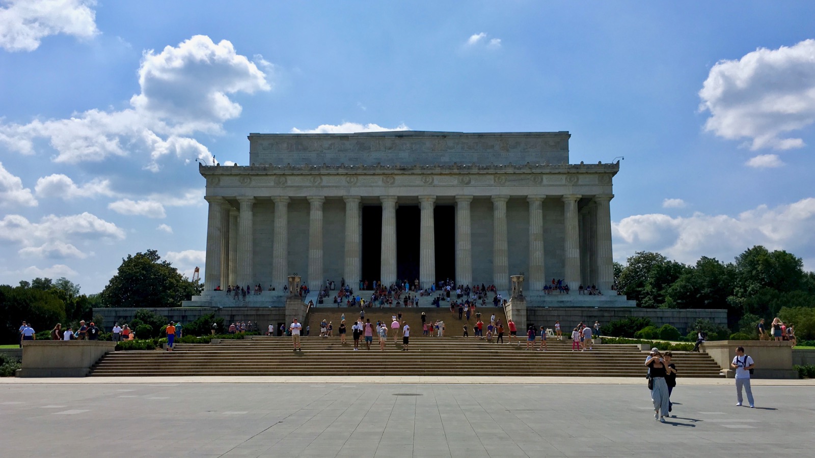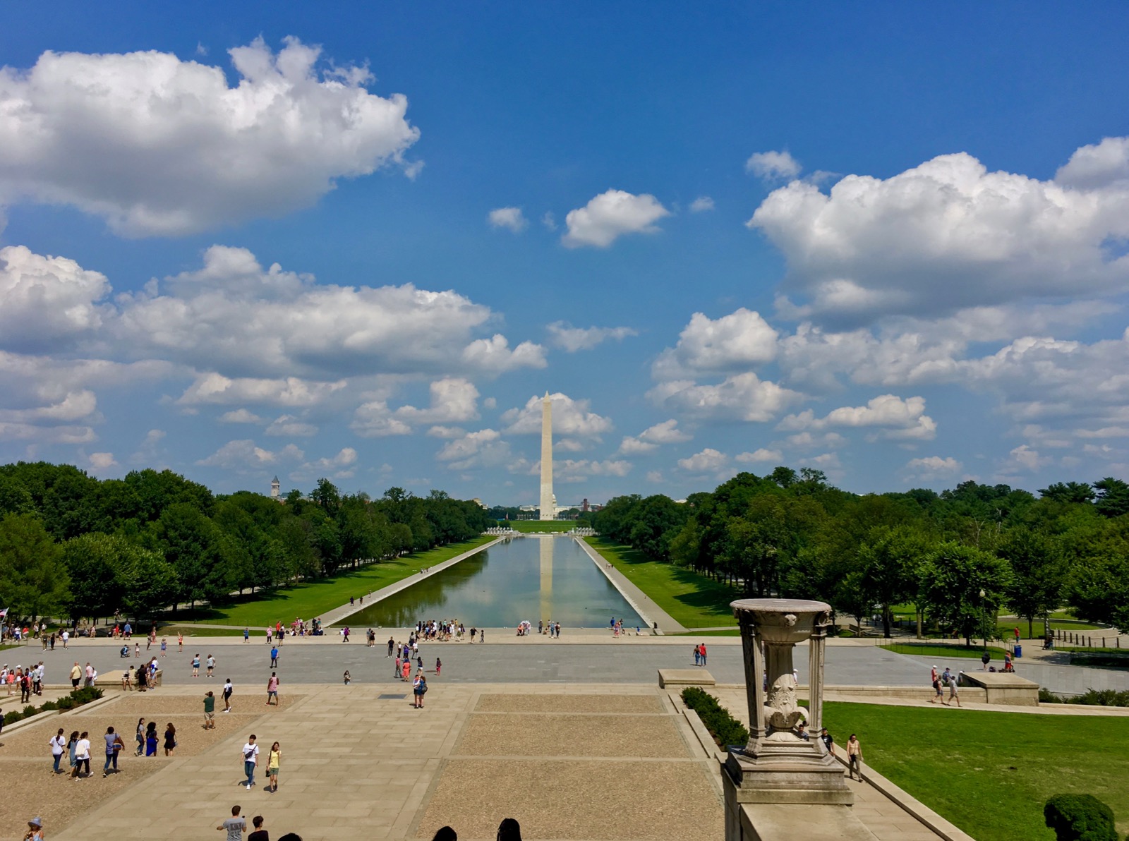 We continued our hike through sweltering heat and ascended the steep steps to the summit of the Lincoln Memorial where we were rewarded with breathtaking views that extended the entire length of the Mall. The reflecting pool mirrored the beautiful park of patriotism laid out below.