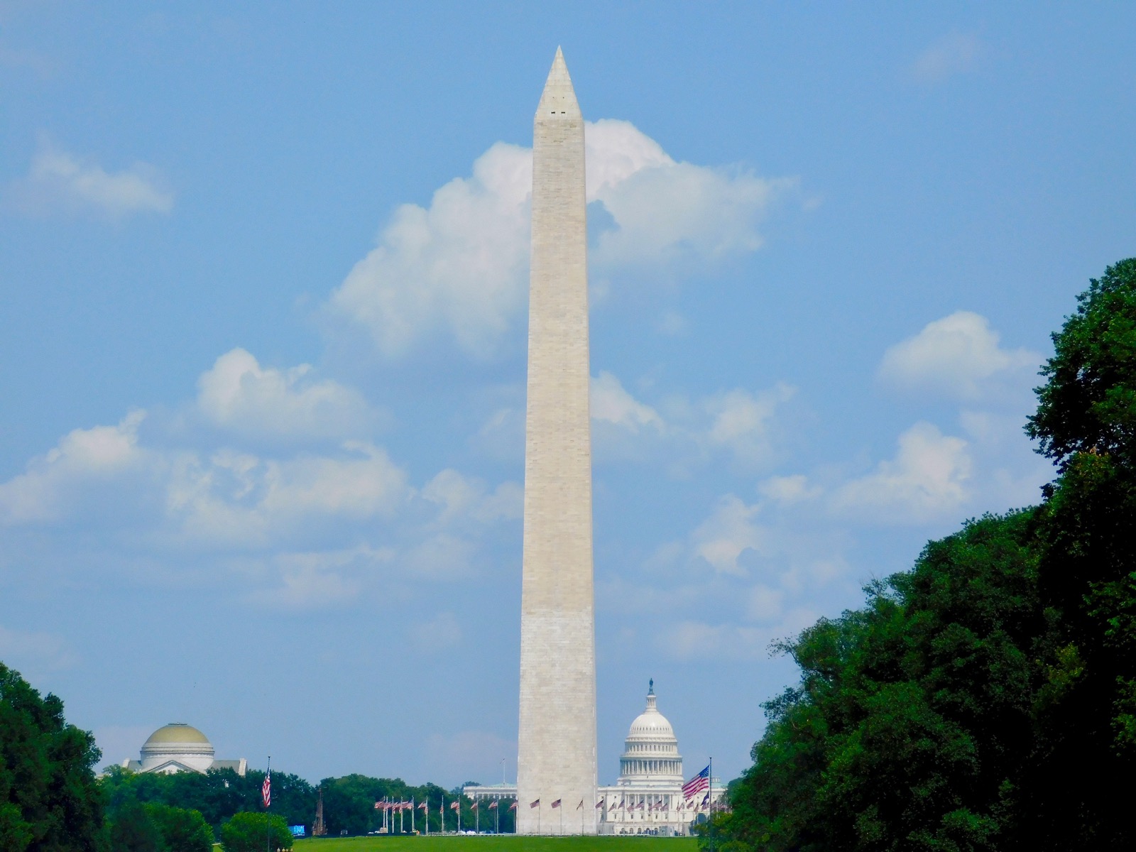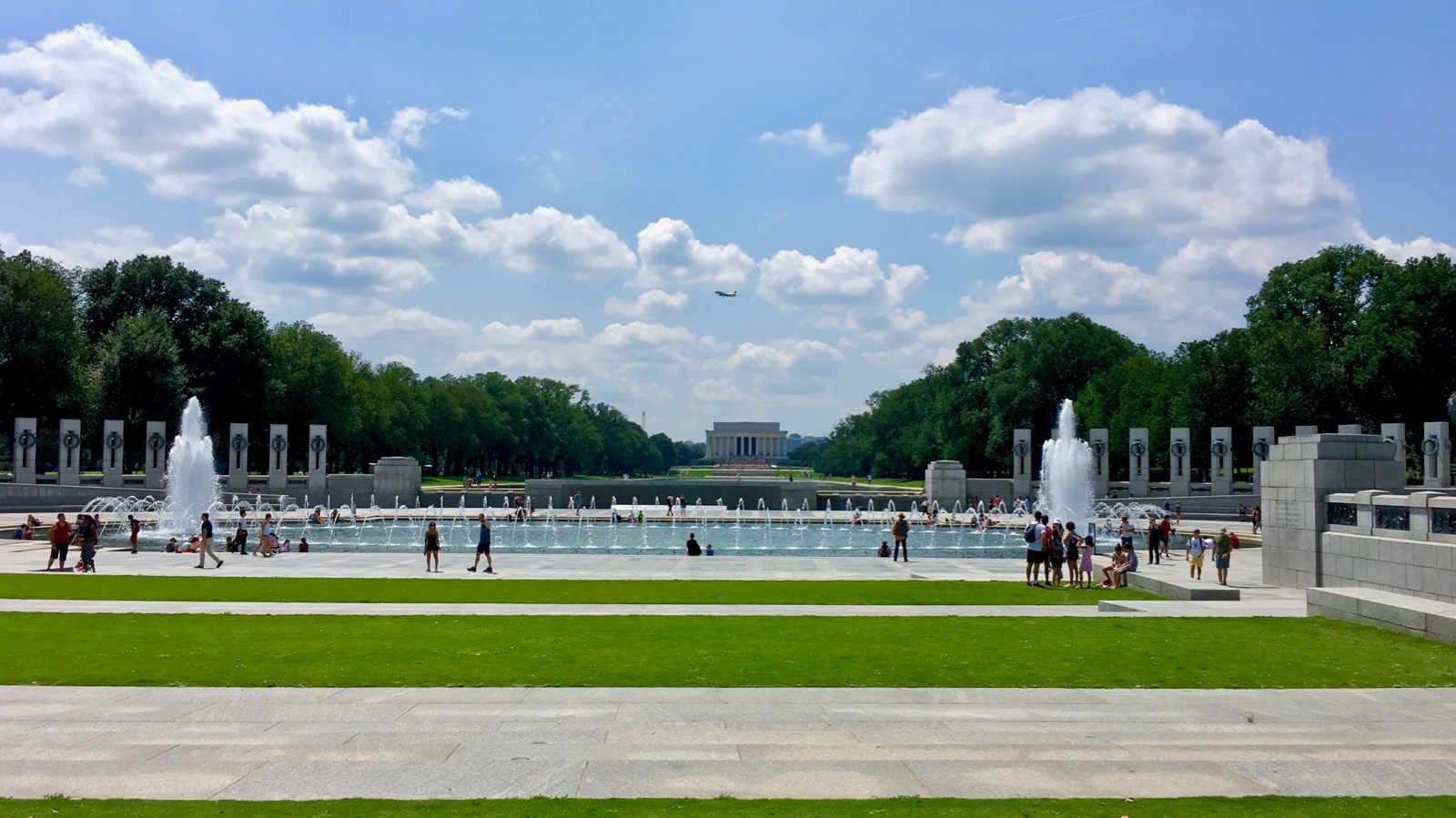 A strenuous trek was required to reach the base of the Washington Monument which was an imposing structure that rose straight up into the sky. Over the hill and the World War II Memorial was a wonderful, fountain-filled tribute to all veterans who fought in that war.