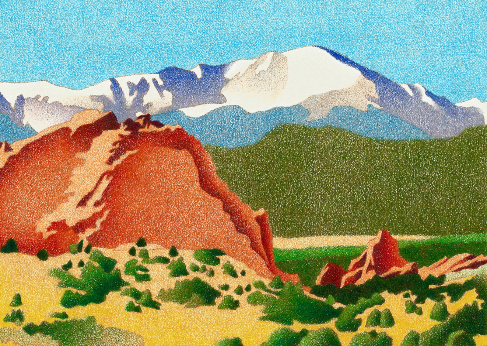 Pikes Peak Winter - Colored Pencil Drawing