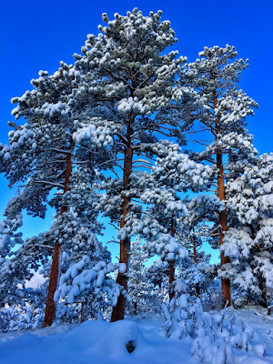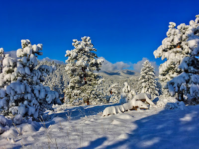 By the next morning, the Rocky Mountains were buried in deep snow while radiating beauty beyond comprehension. Overcast early, the normally rich-hued forest was pared down to black and white.
