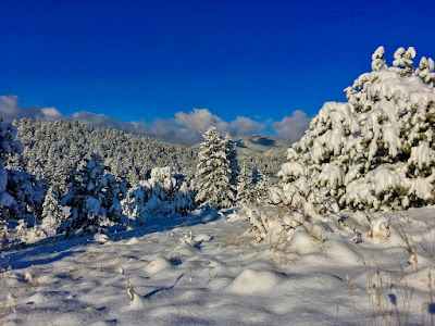 A torturous wind whipped down through the meadow, making the intolerable matters much worse. The temperatures crashed to well below freezing and crystallized the foothills into a frozen land of enchantment.