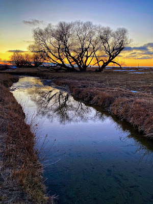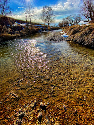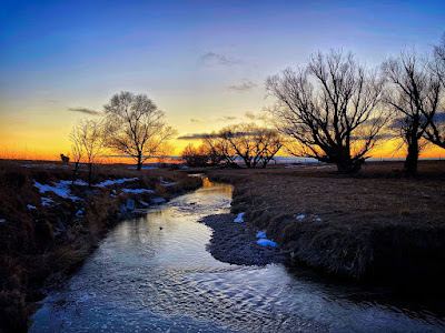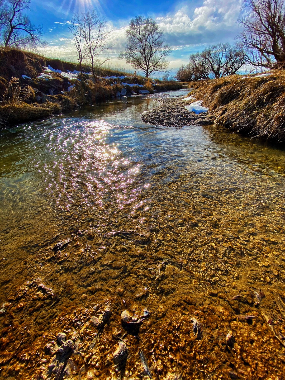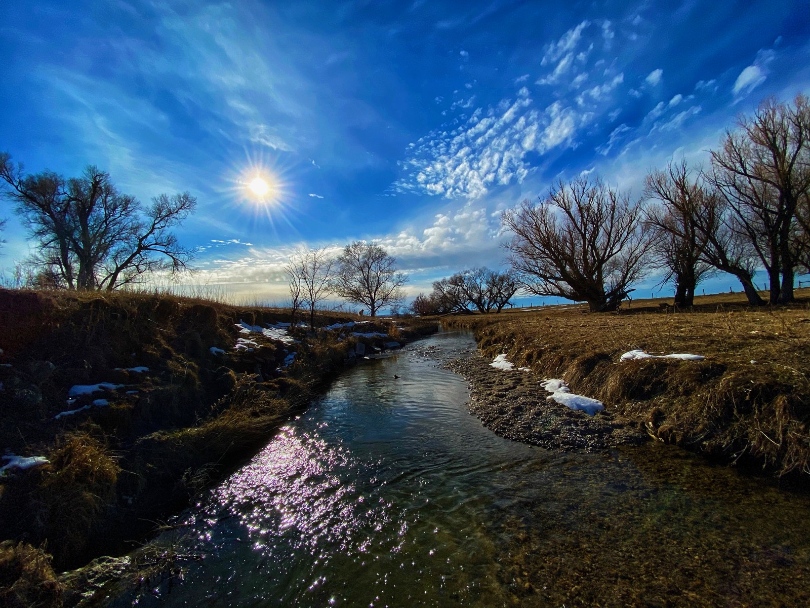 During our stay at my parents’ Little House on the Prairie, the weird weather was unseasonably warm. This December, the usually frozen creek was found to be ice-free and flowing smoothly through a semi-frosted pasture.
