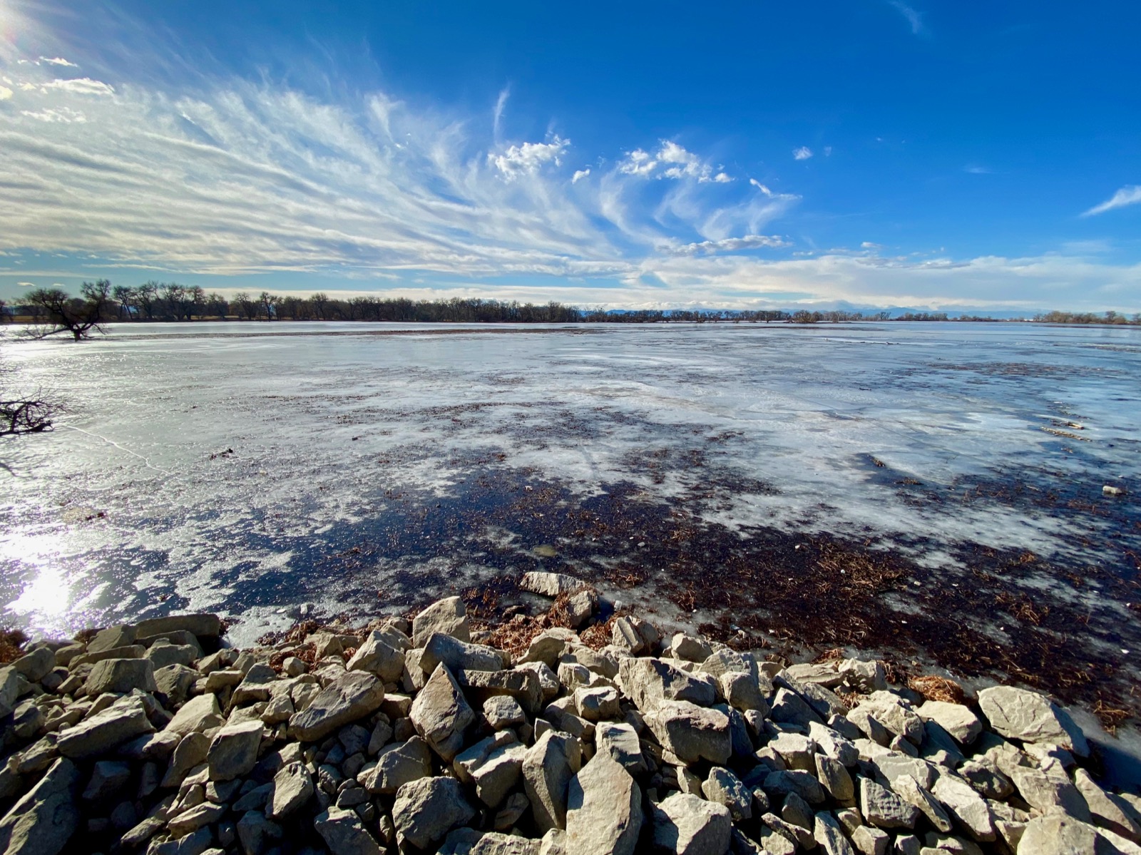 | The reservoir is partially frozen |