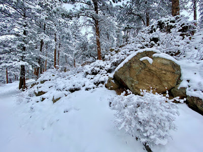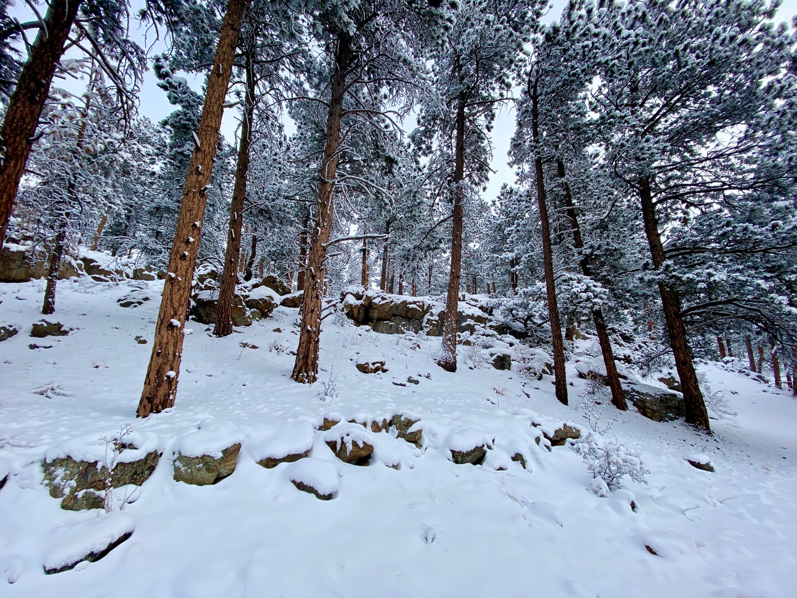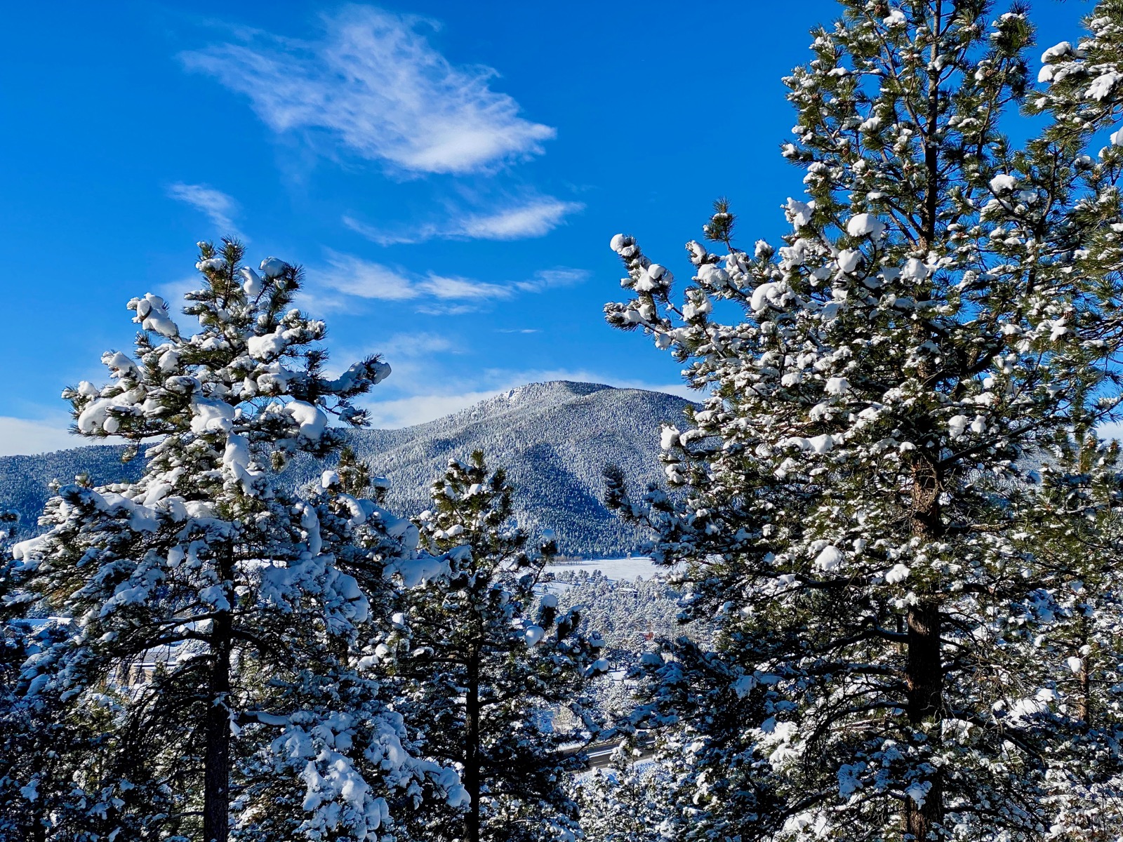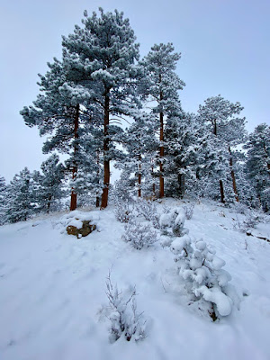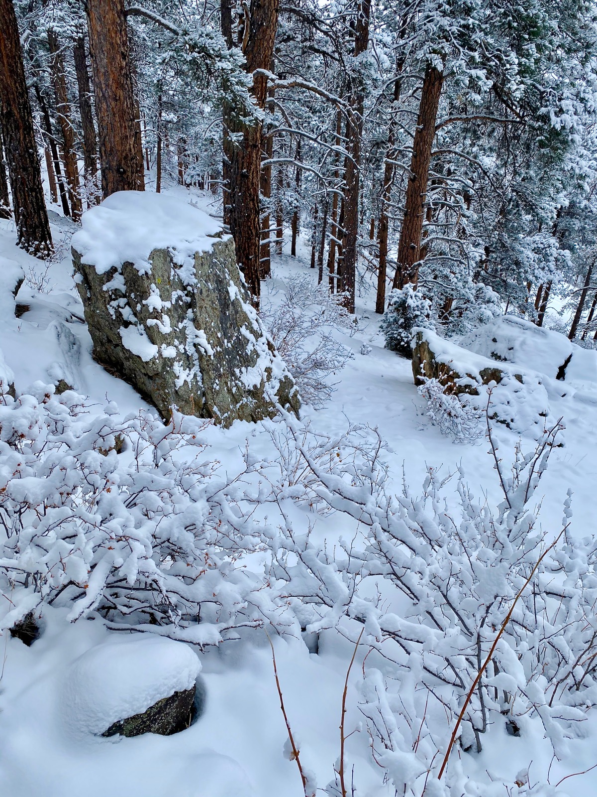 The low, diffused light spread throughout the forest creating a curious combination of fluorescence and shadow. Seen across the valley from a high vantage point, Bergen Peak was a regal monarch robed in white, a frozen monument revealing the true power of the most recent weather system.
