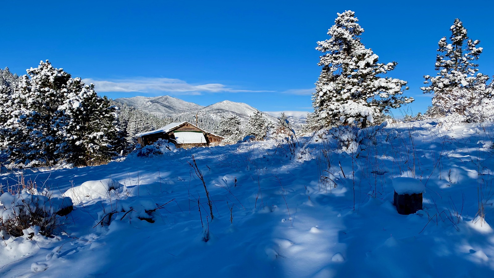 Trudging through the labyrinth of timber, rock and ice on such an extraordinary day was an exhilarating experience. The slippery descent emptied into an isolated meadow where a dilapidated homestead was a weather-beaten tribute to all of the resilient inhabitants of the Rock Mountains.