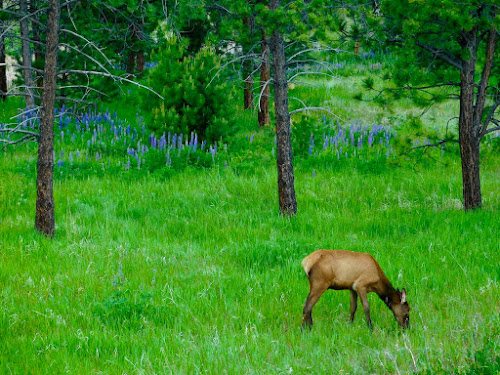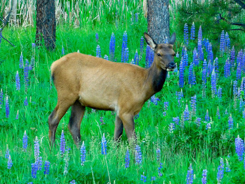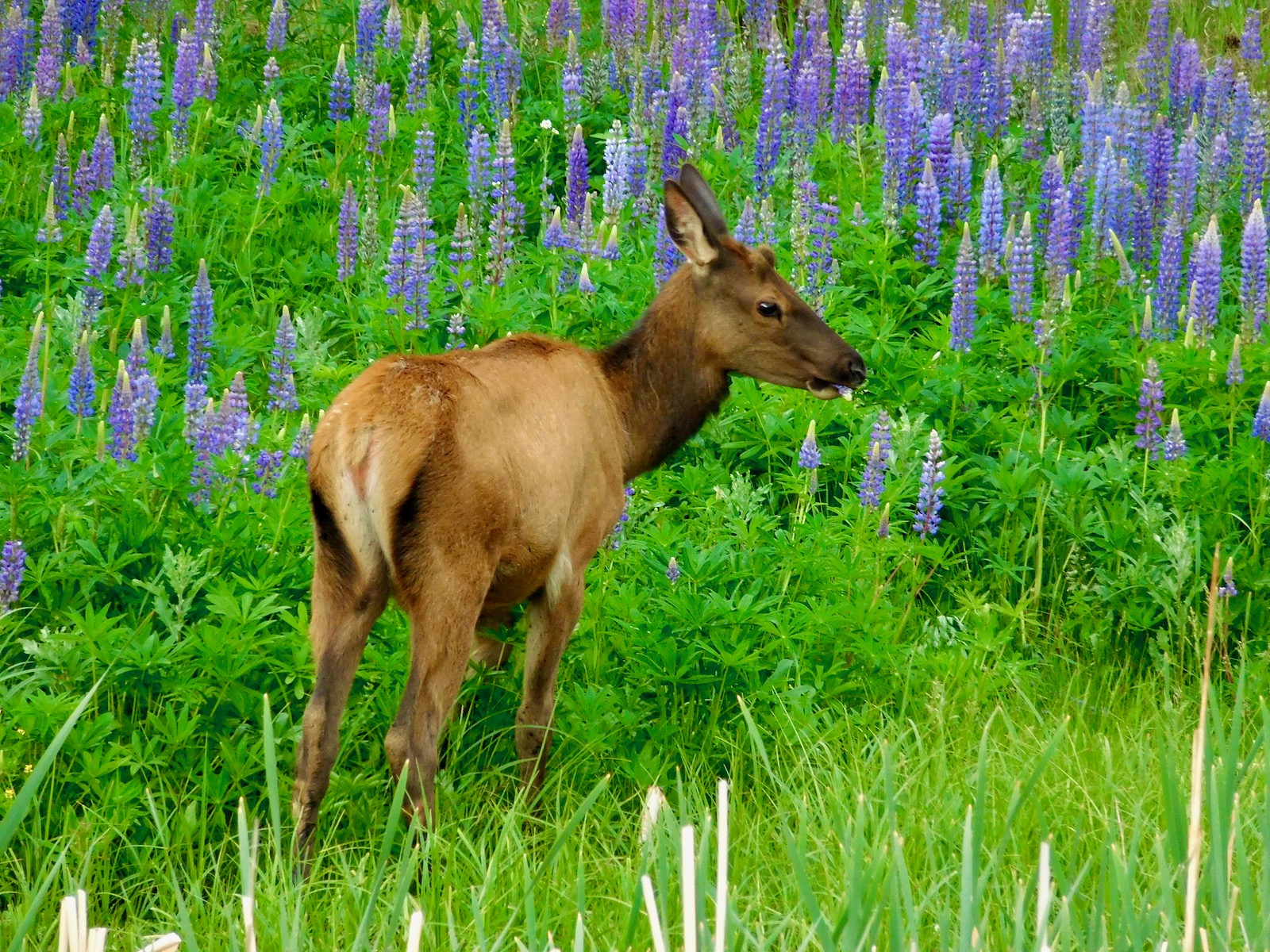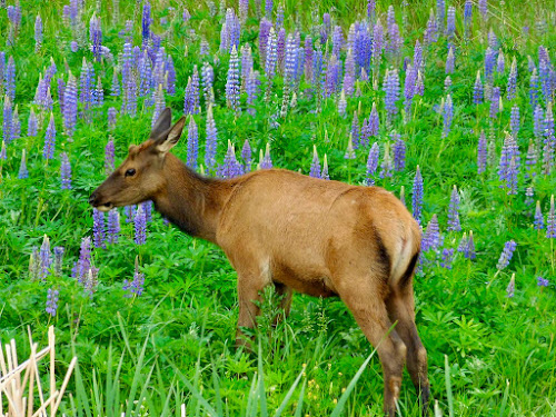 Filling the discreet ravine, the large-leaved lupine are massive plants whose ladder-like blossoms climb towards the sky. The hungry wapiti are anything but gentle as they tromp through the purple field, consuming a huge swath in a single sitting.