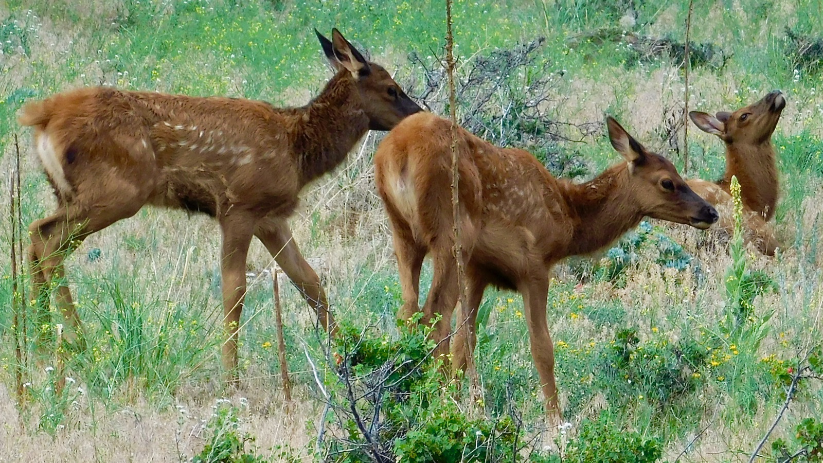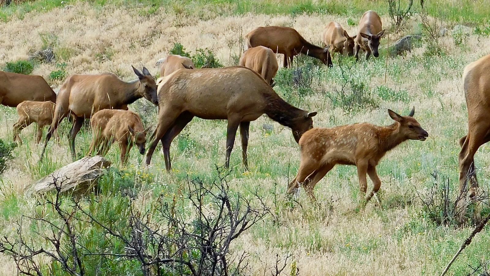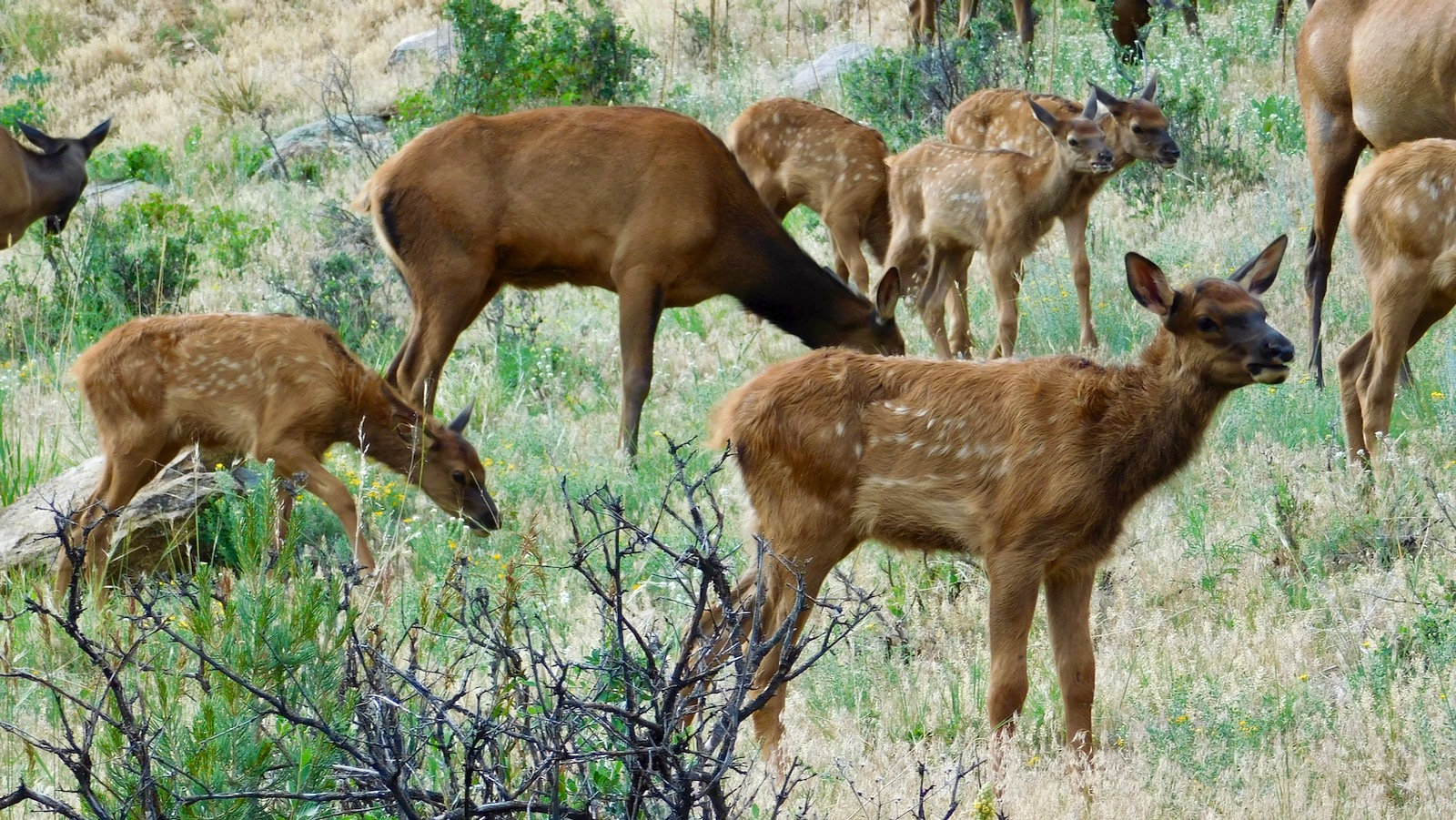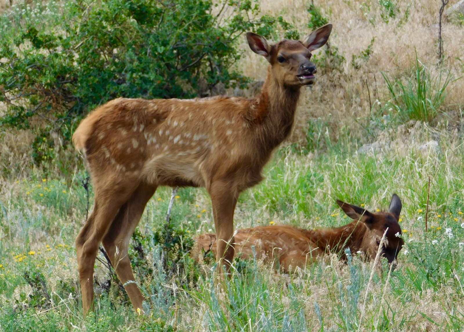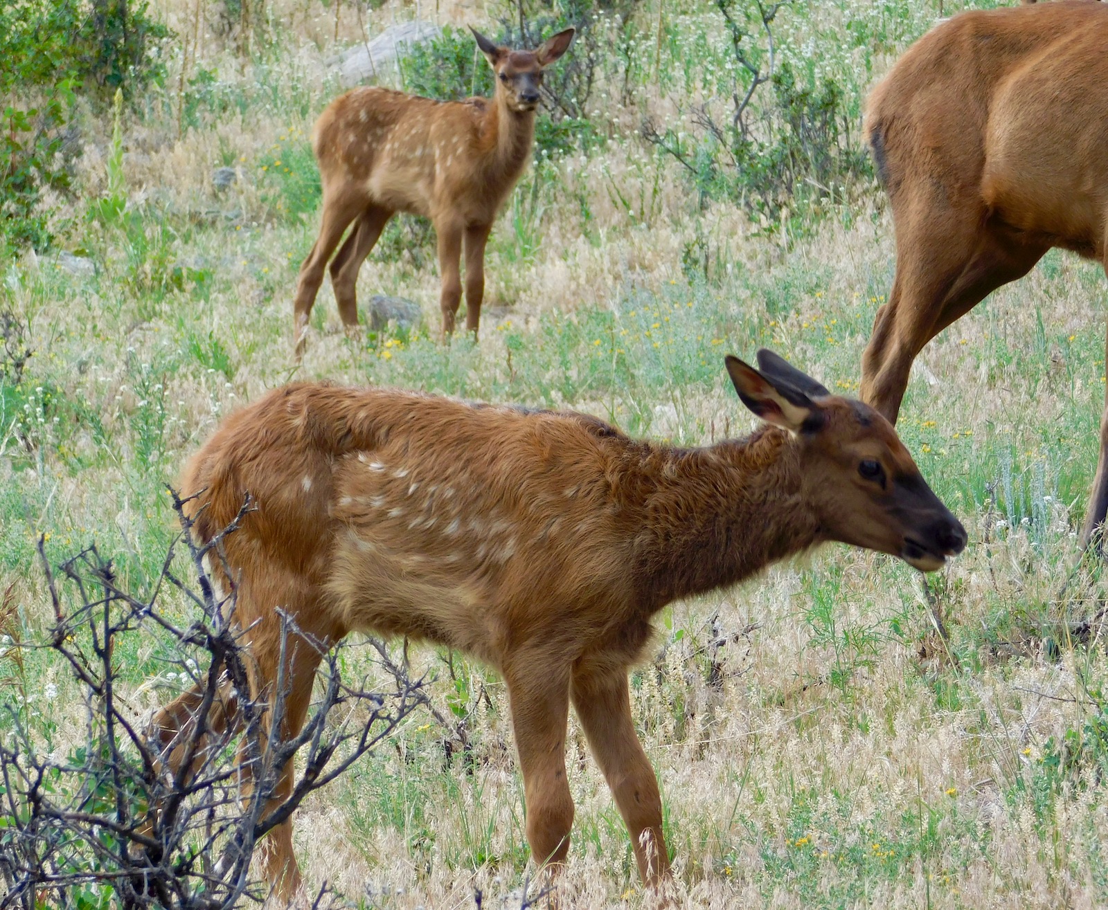 By the middle of summer, the elk population explodes with the sudden arrival of so many white-spotted calves. Unable to stay still, the babies are up and moving almost immediately, exploring their wondrous surroundings.