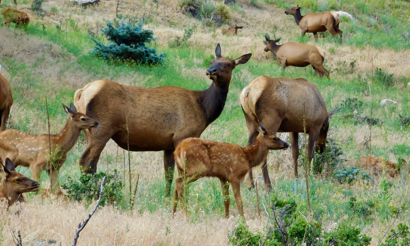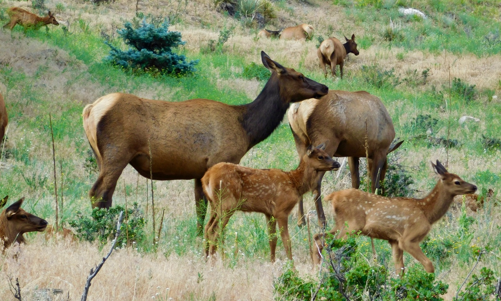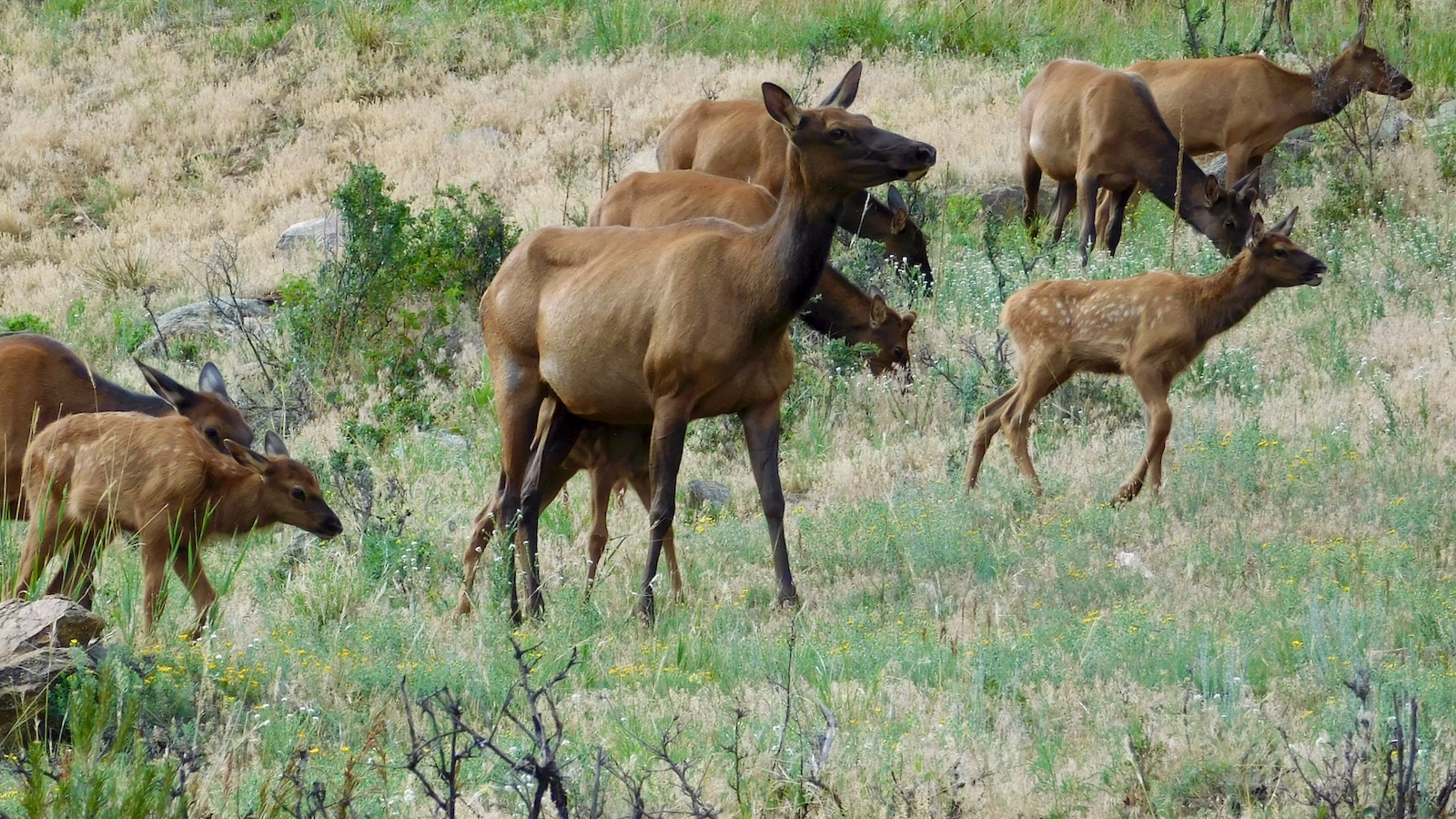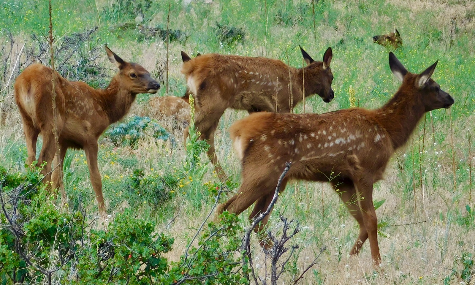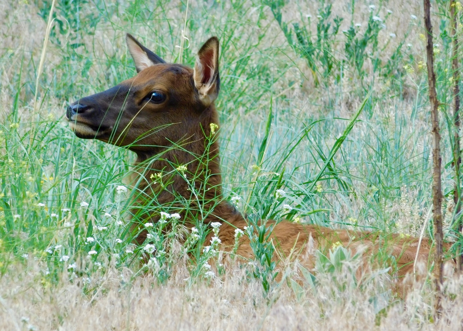 By the middle of summer, the elk population explodes with the sudden arrival of so many white-spotted calves. Unable to stay still, the babies are up and moving almost immediately, exploring their wondrous surroundings.