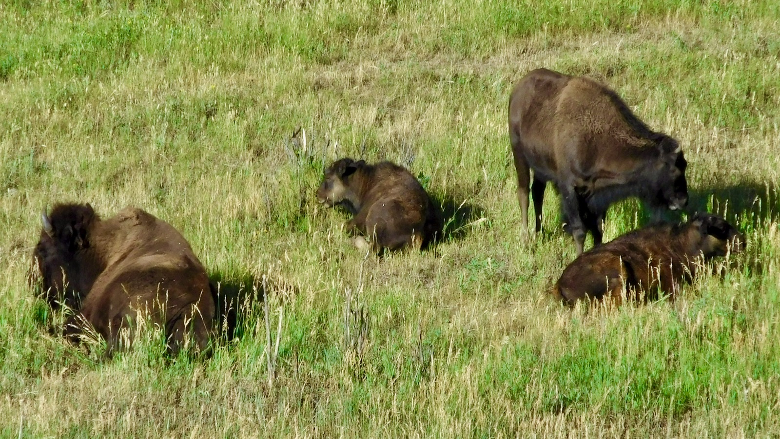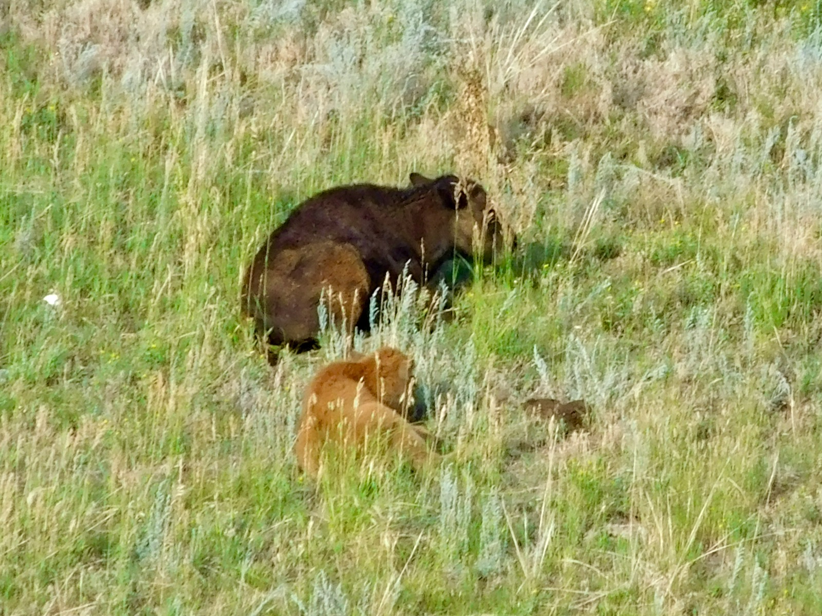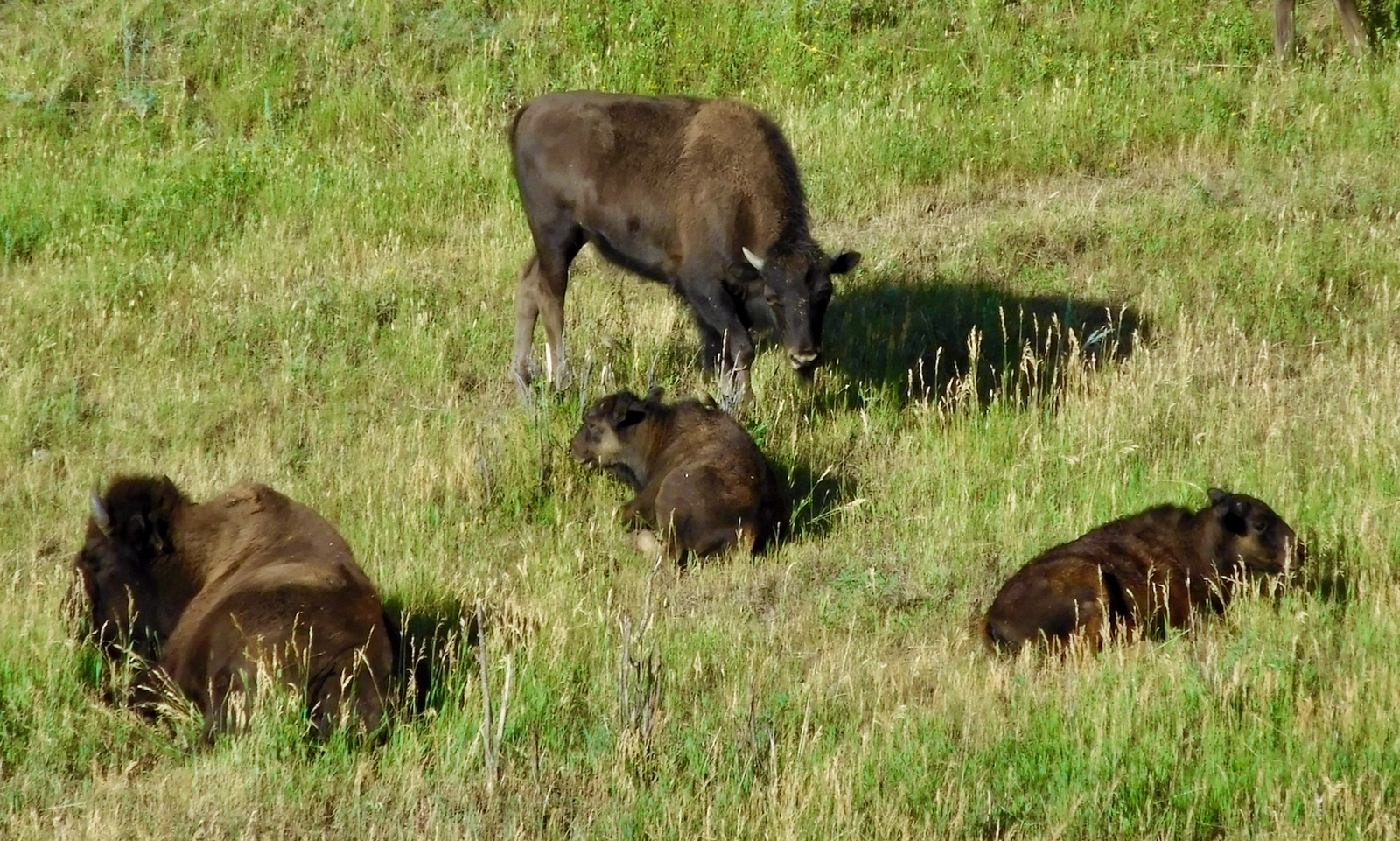 Born in May, the precocious devils are born into the world big and agile. The whole congregation is pretty protective and the cows collectively take care of the calves for about a year.