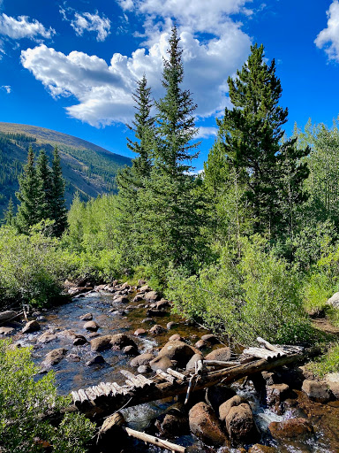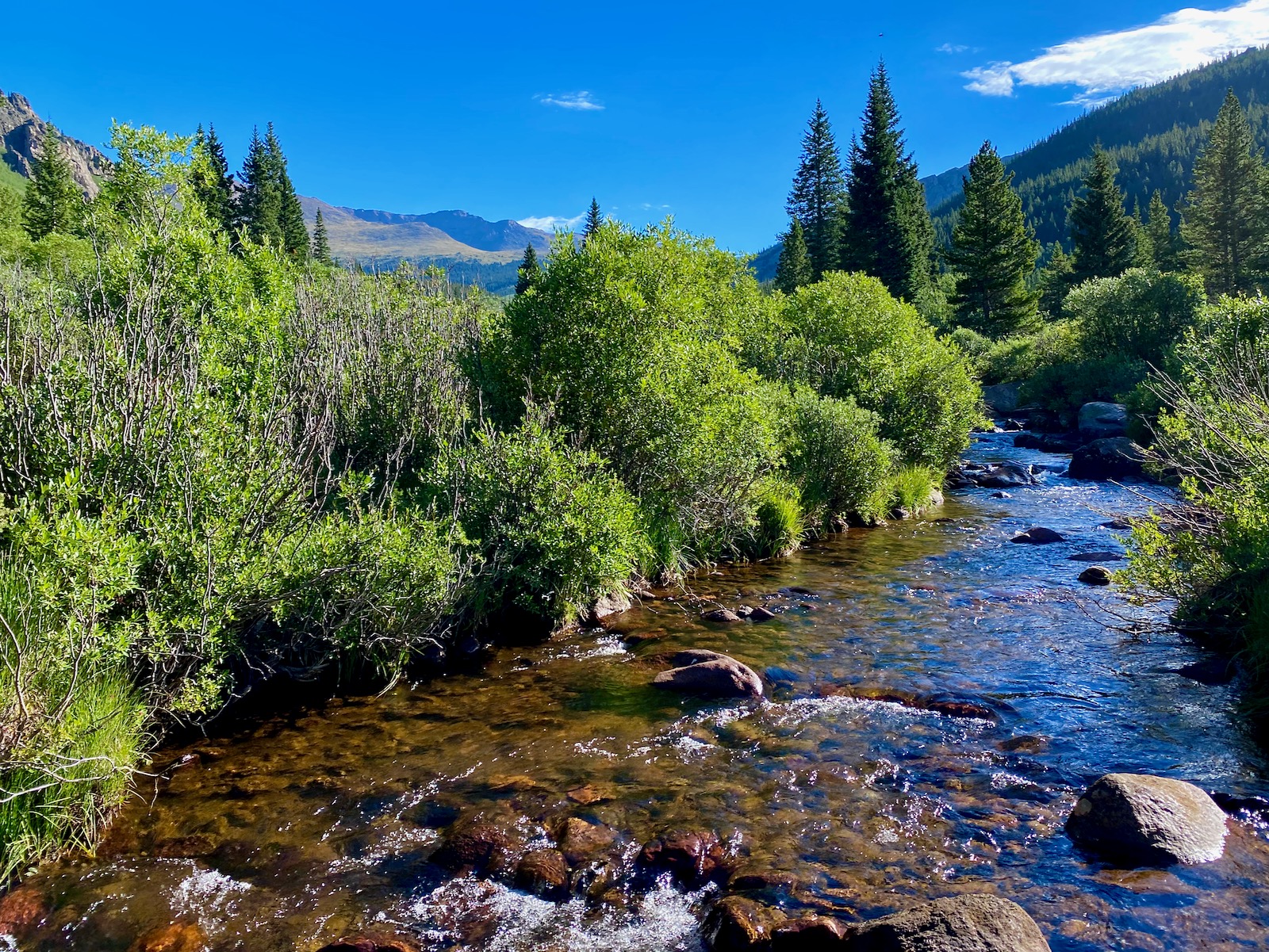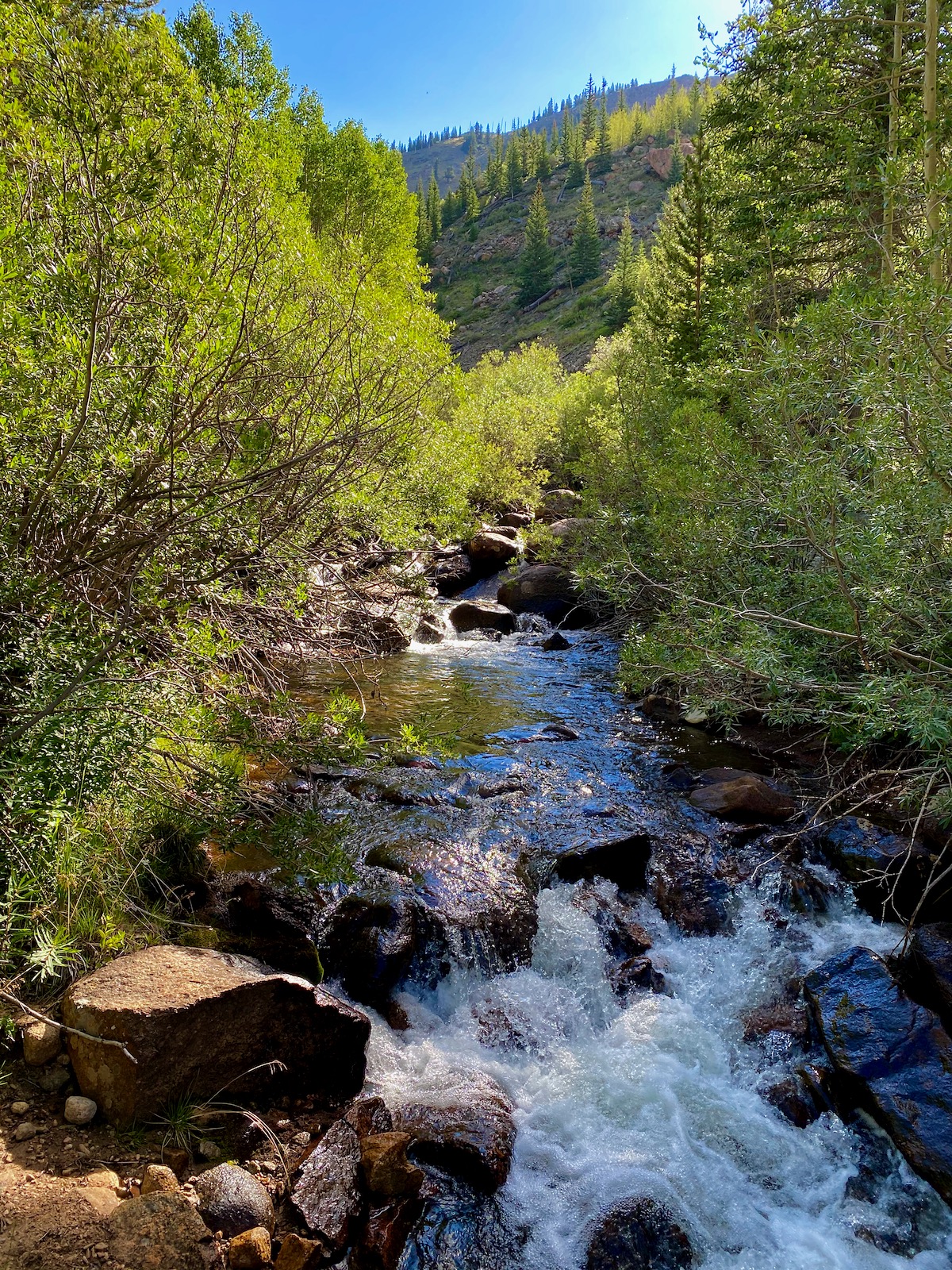 The difficult journey to this remarkable, alpine refuge begins in a forest of lodgepole pine and progresses through tremendous groves of radiant aspen. A cascade of icy snowmelt traces the trail and the comforting sound of rushing water placates the soul.