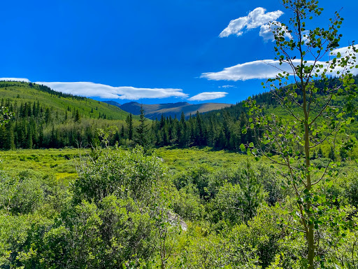 Back in the bottomlands, it’s a paradise for wildlife because of the vast bounty of food, water and shelter. Bighorn sheep graze across the lower meadows, red squirrels dominate the woodland, moose tread through the marsh and marmots scurry near rocky outcrops.