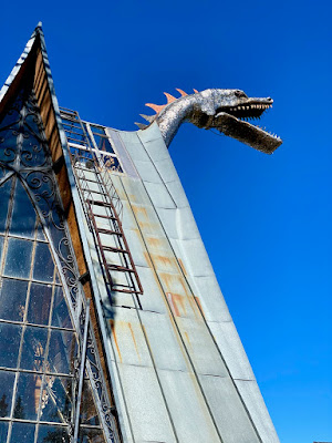 From the outside looking up, the sheer scale of the structure begins to sink in, making you feel thankful to have both feet on the ground. The most fascinating piece is the fierce dragon that guards entry into this magical kingdom. Armed with a steely gaze, the silver serpent warns all who dare to approach - ENTER AT YOUR OWN RISK!
