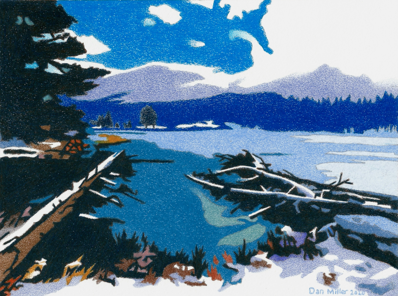 Sprague Lake Winter - Colored Pencil Drawing