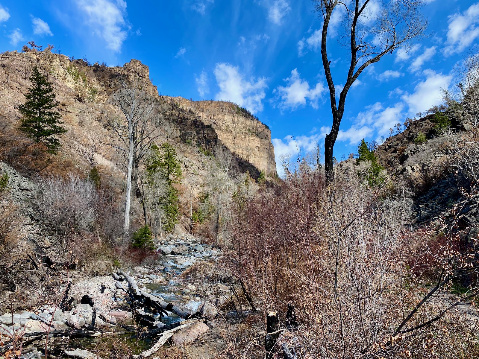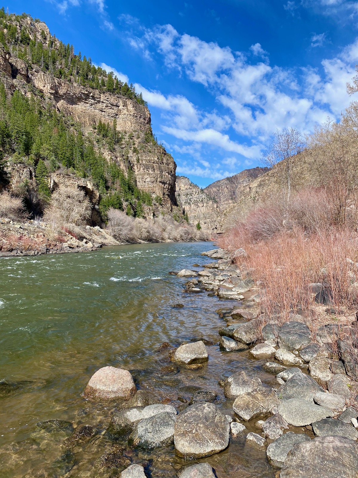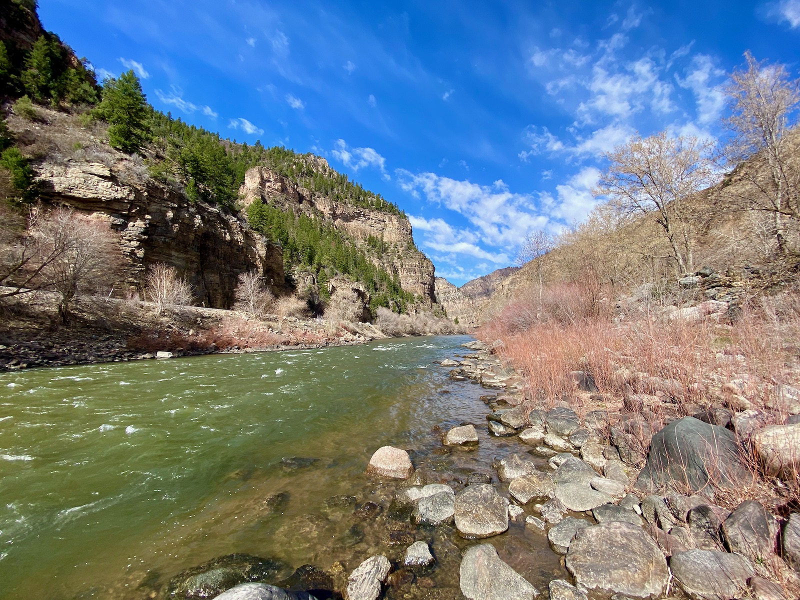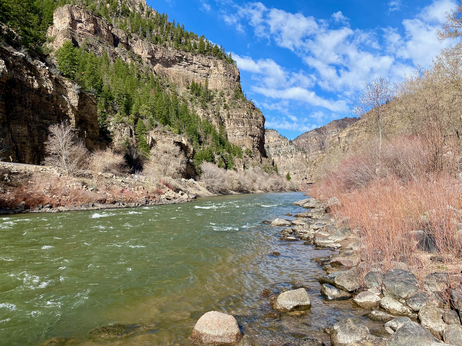 Smack dab in the middle of spectacular Glenwood Canyon, Grizzly Creek tumbles down out of the wilderness and collided with the Colorado River. The beautiful confluence occurs within the sheer walls of steep cliffs adorned by a variety of high country botanicals.