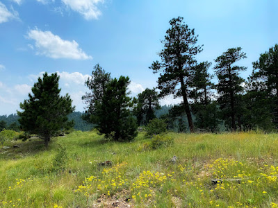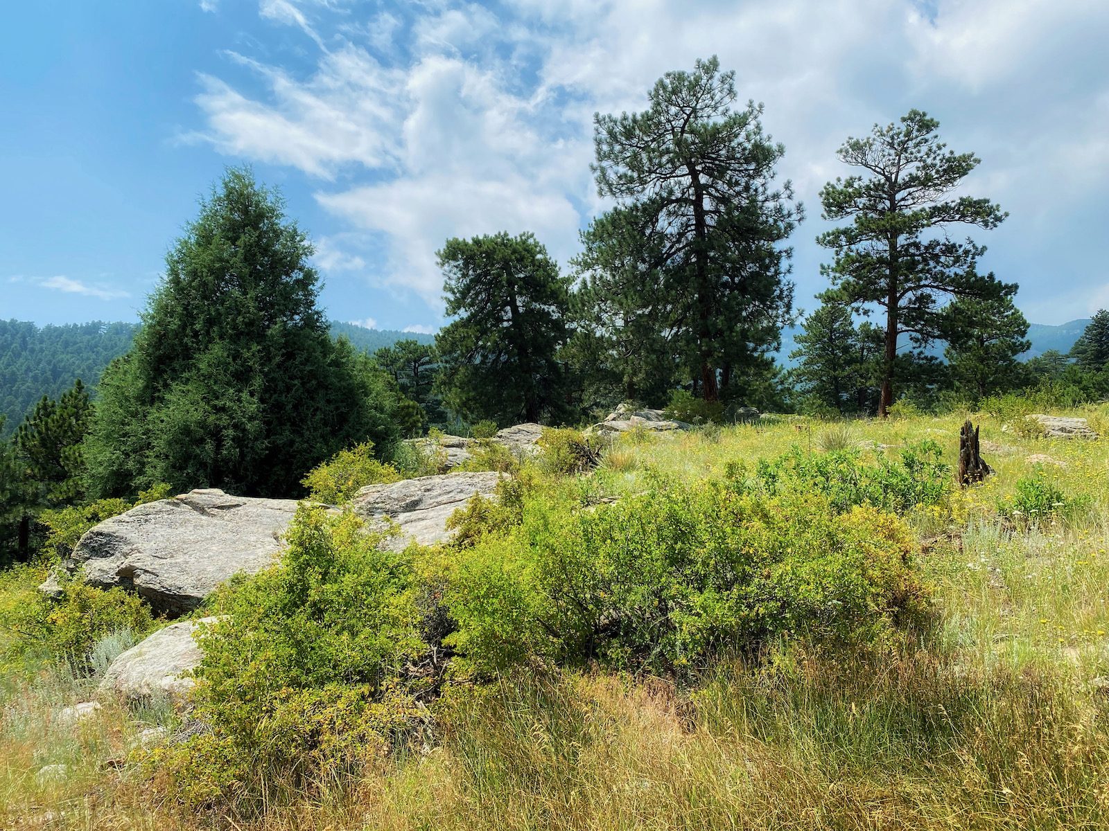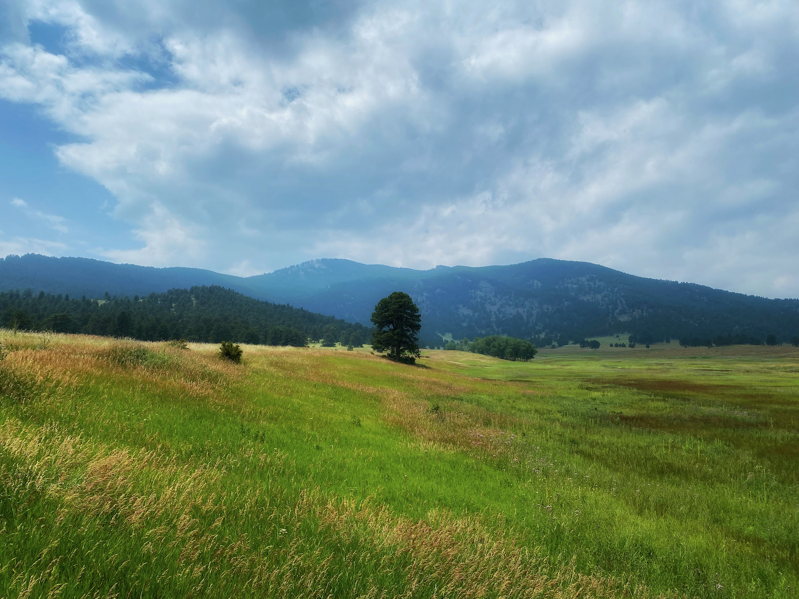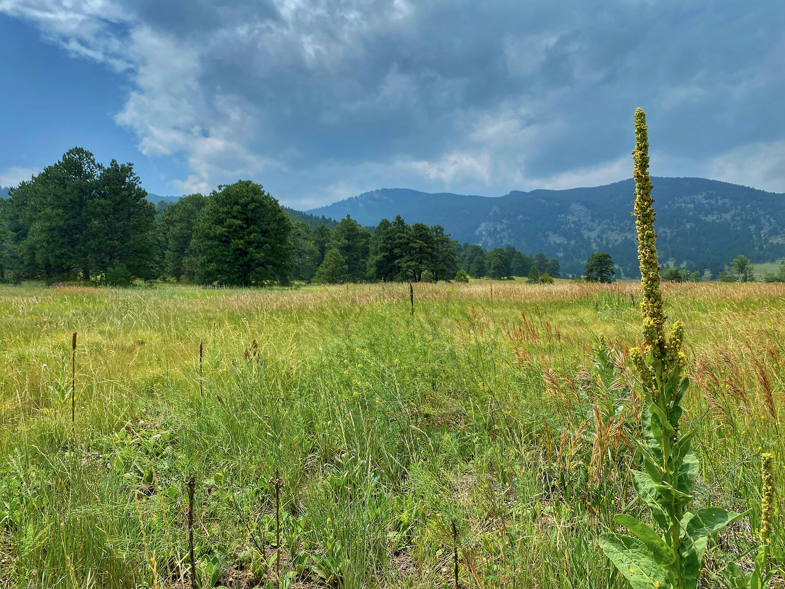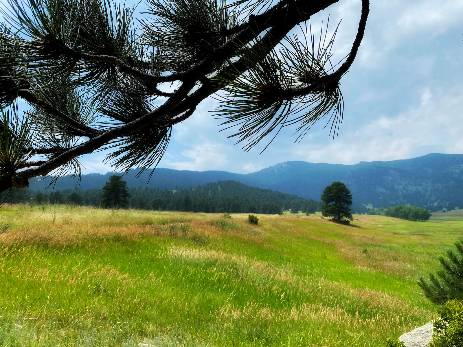 Secluded in Bergen Peak’s purple shadow, a writhing dirt path snakes it’s way through a tall grass meadow. From the wavy elk pasture, you can see Elk Ridge’s dark spine curve above a dense forest of ponderosa pine.
