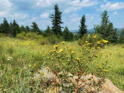 The narrow crinkle of rocky trail is a scenic backbone that bridges the flatland with the big mountain’s steep slopes. This year an assortment of yellow wildflowers sprout from the rich turf, glittering like gold medallions in the summer sunlight.
