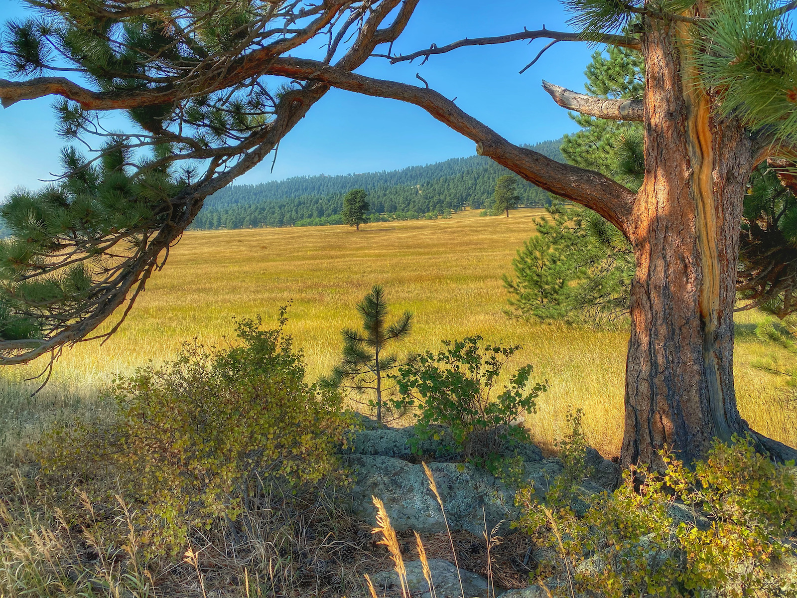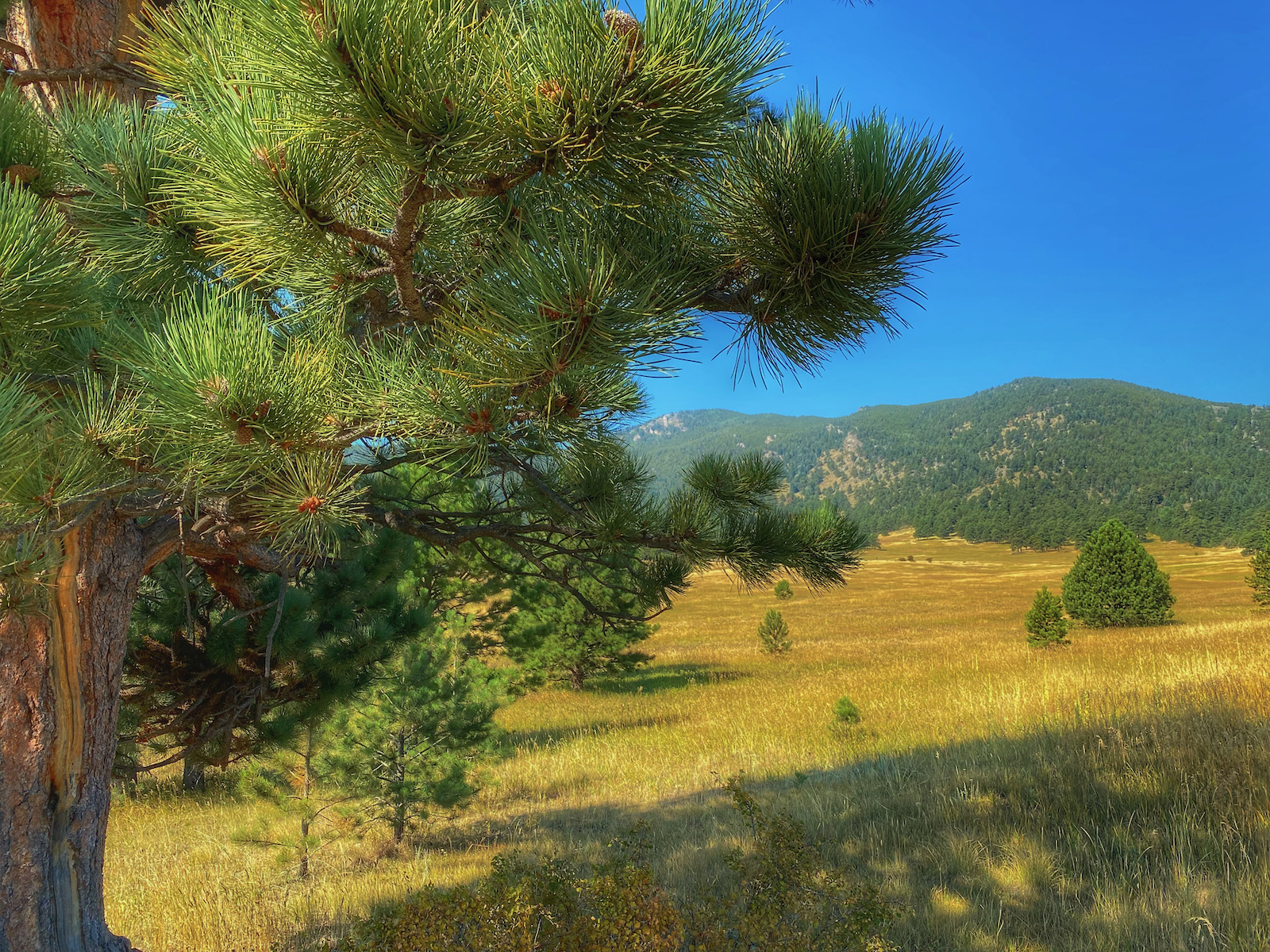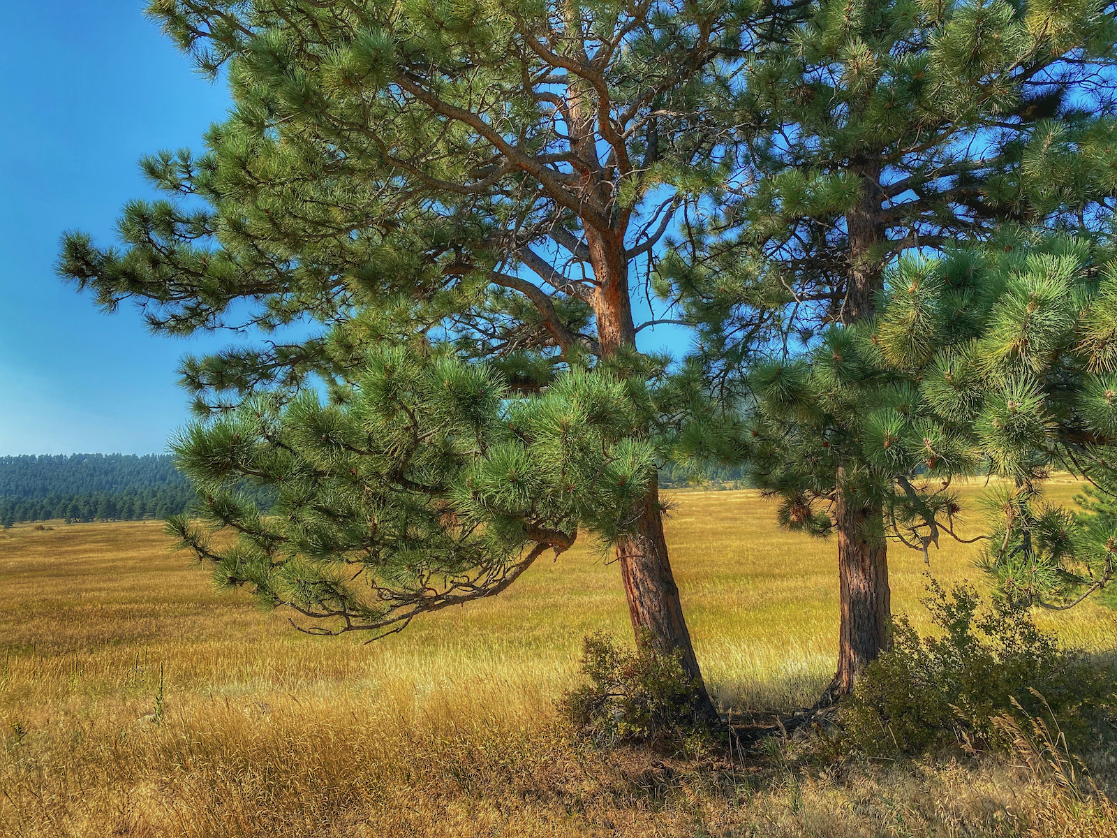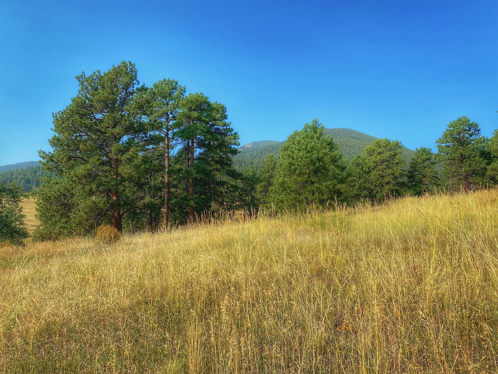 A dispersion of isolated pine trees acts as a gateway to a golden grassland tussled by autumn’s persistent breeze. The stoic guardians are important compositional elements adorning the foreground of fleeting snapshots.