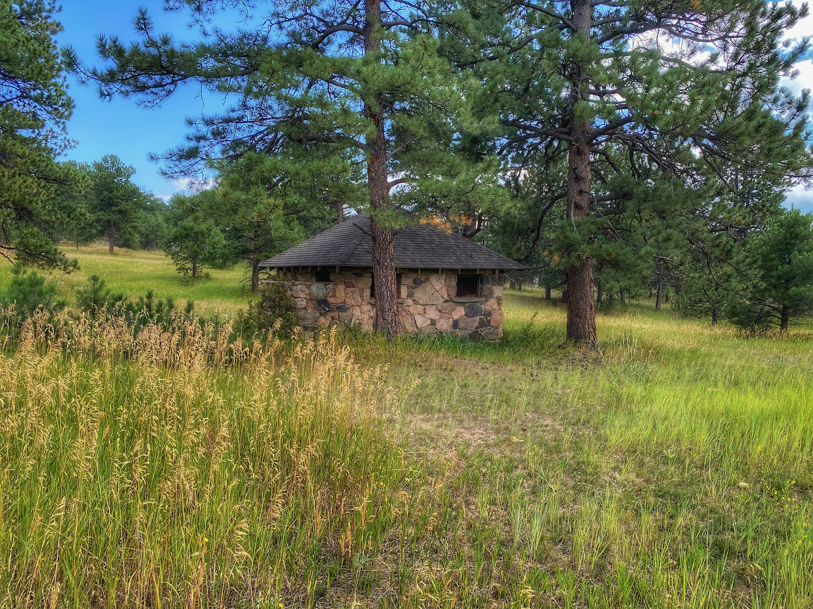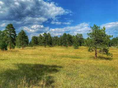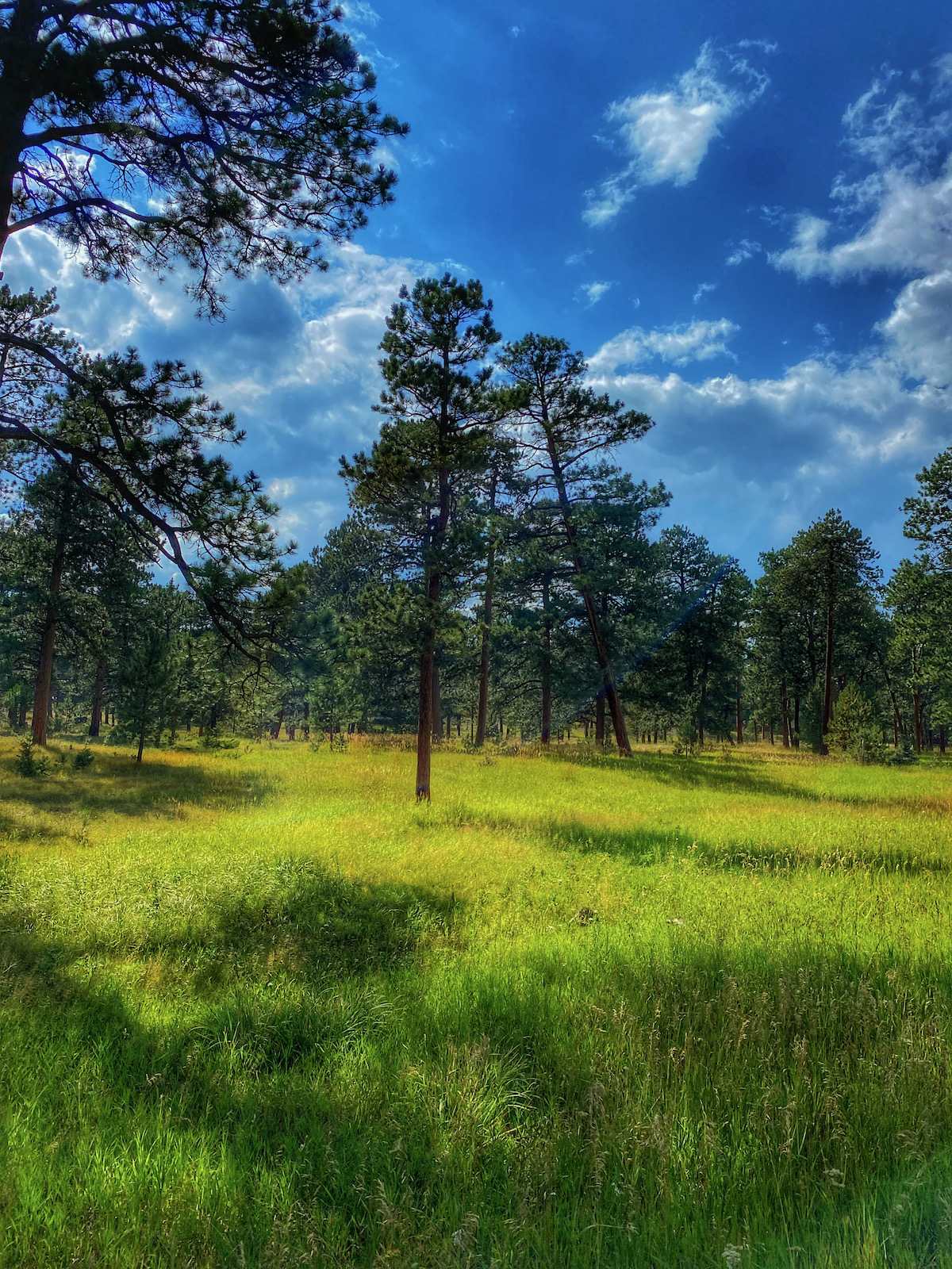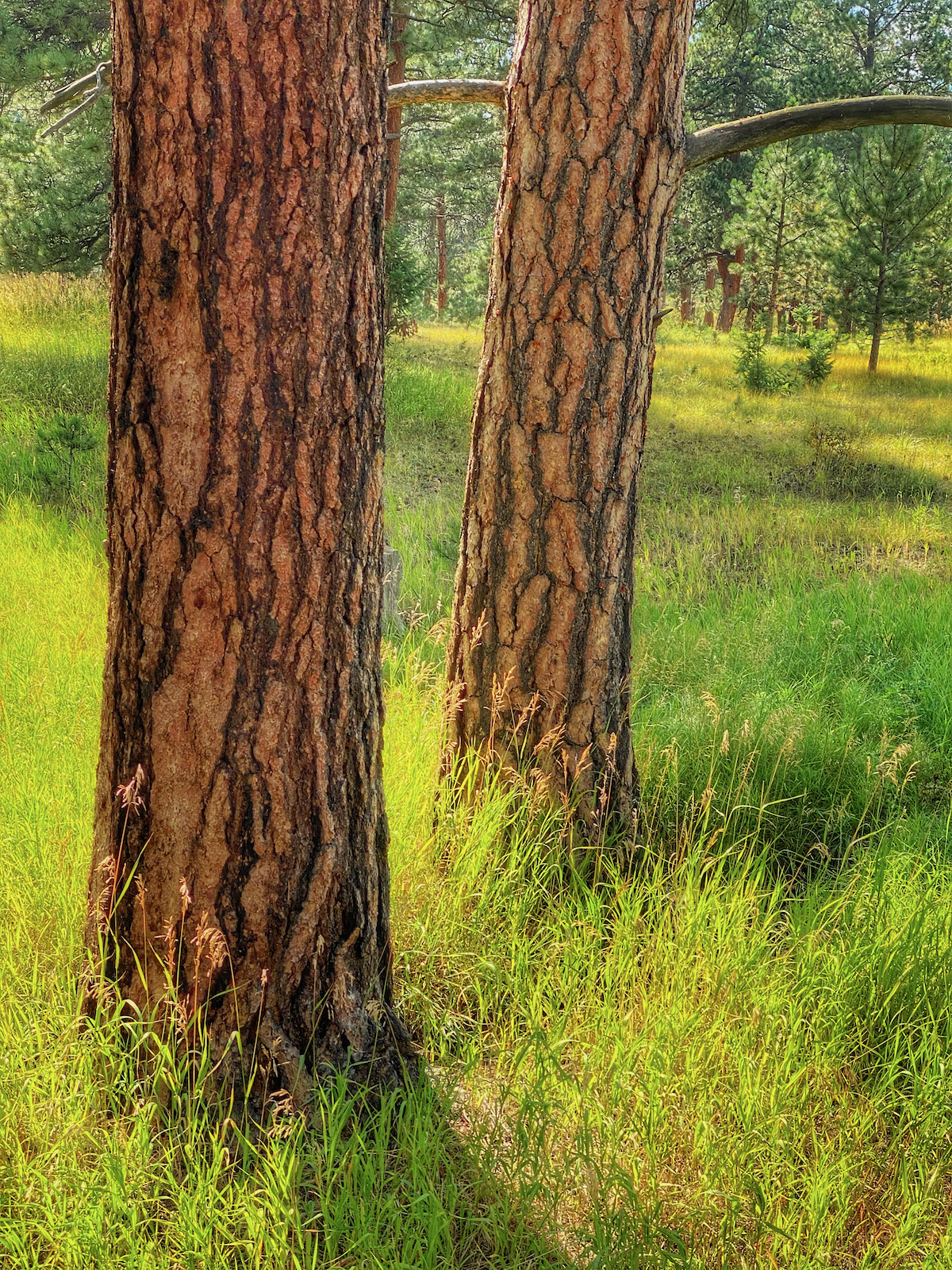 The Bergen Park Trail is a distinct walkway that circumnavigated a very old swath of ponderosa pine forest. The giant trees blot out the sun but some especially resilient rays of light pierce the canopy of sharp needles.