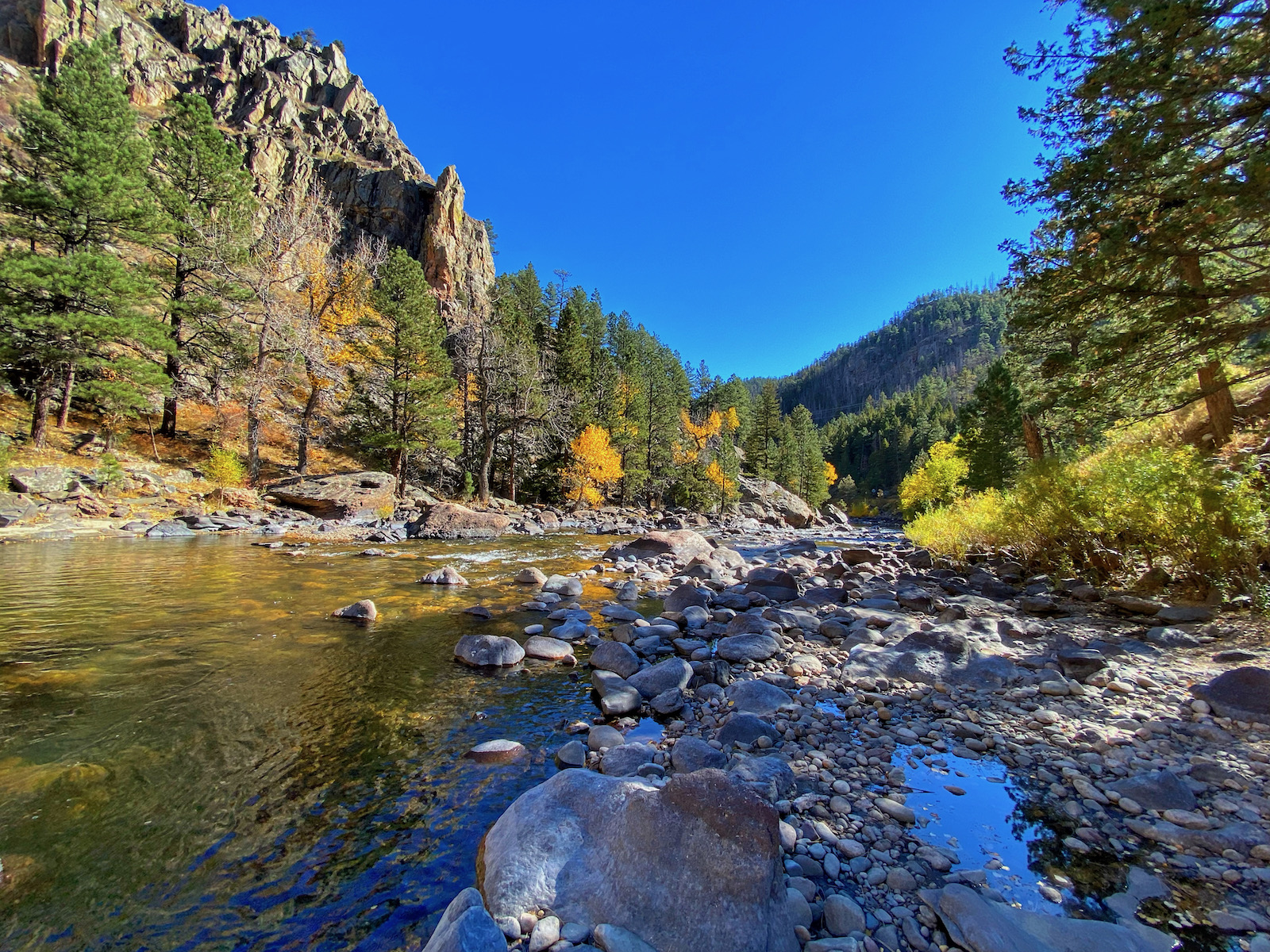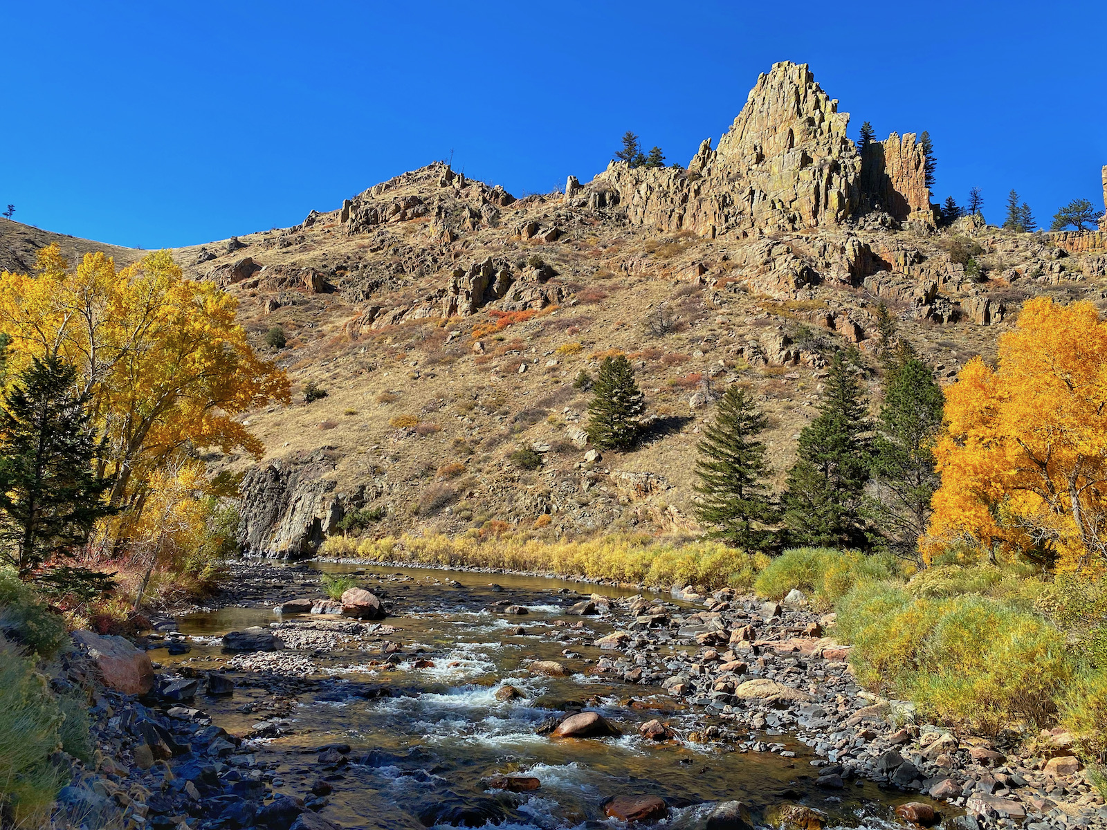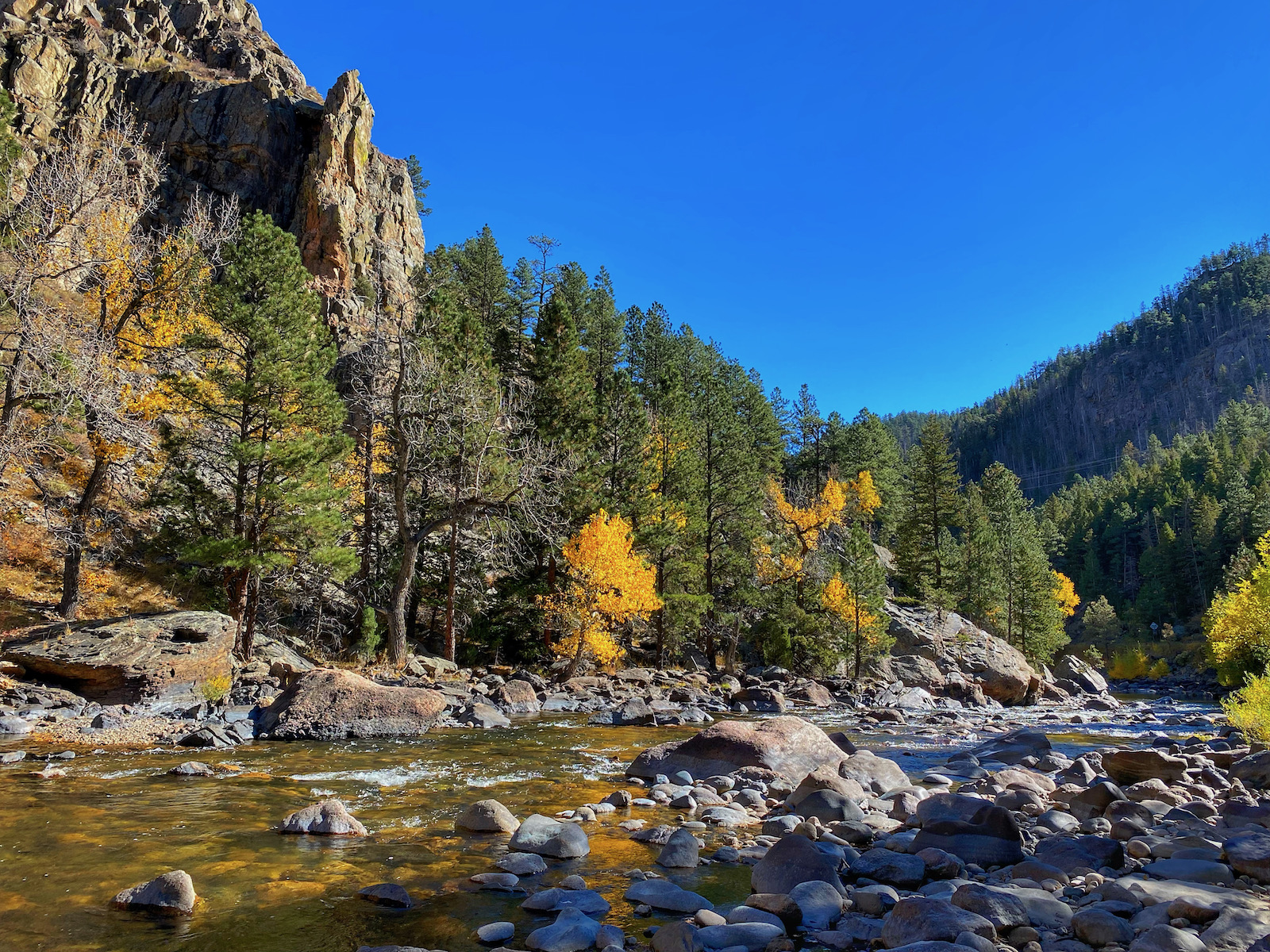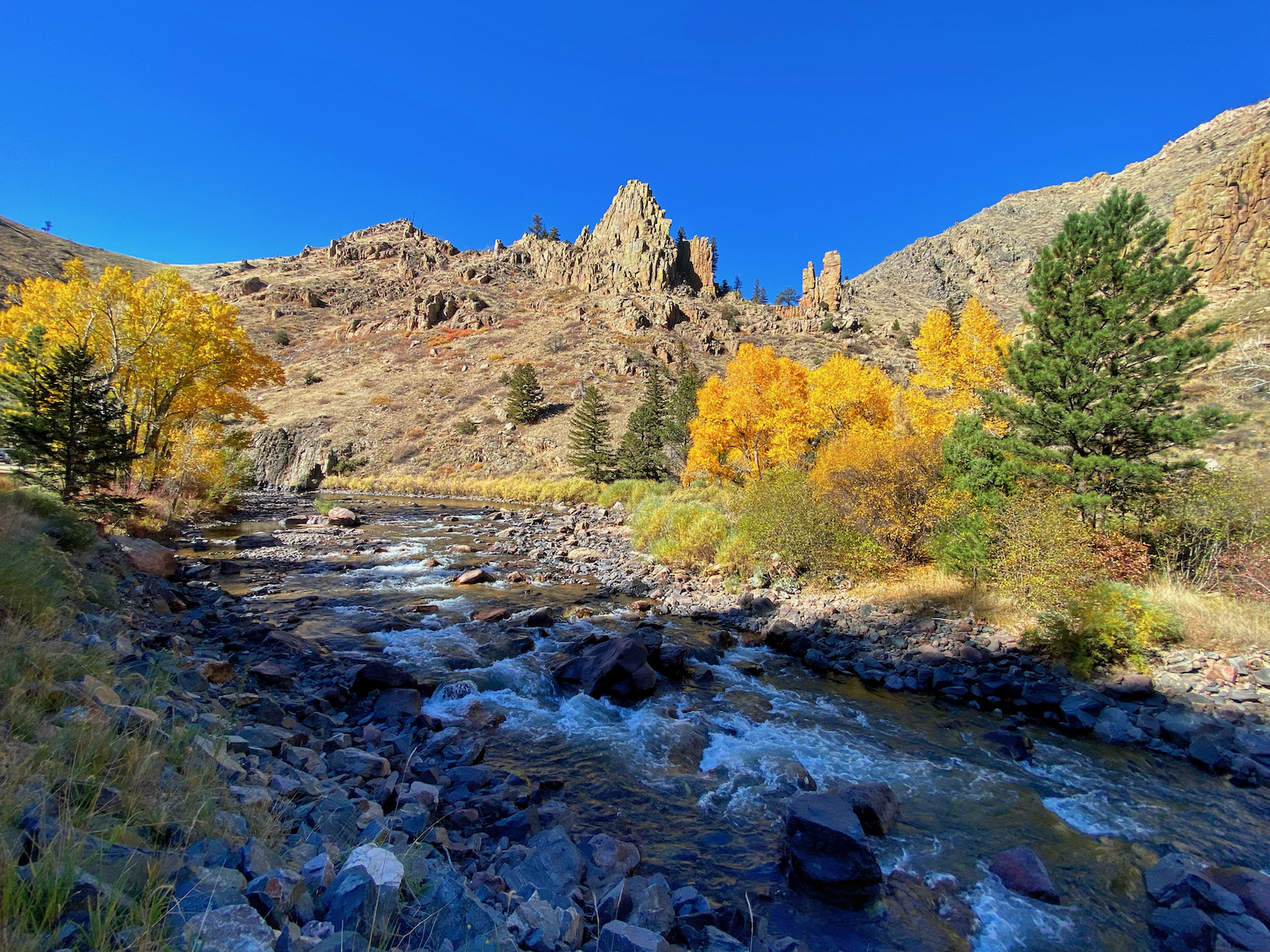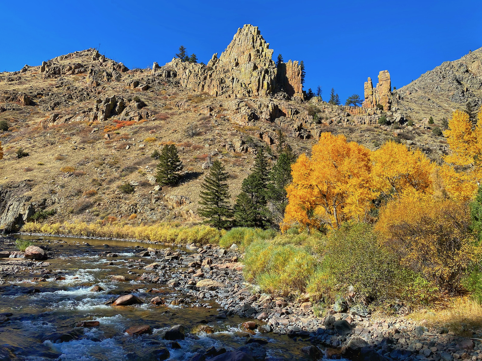 Gashed into the northern Front Range Foothills, Poudre Canyon is a steep drainage that’s as picturesque as it is rugged. A braid of blue water snakes through the tortuous chasm while flowing down to the lowlands.