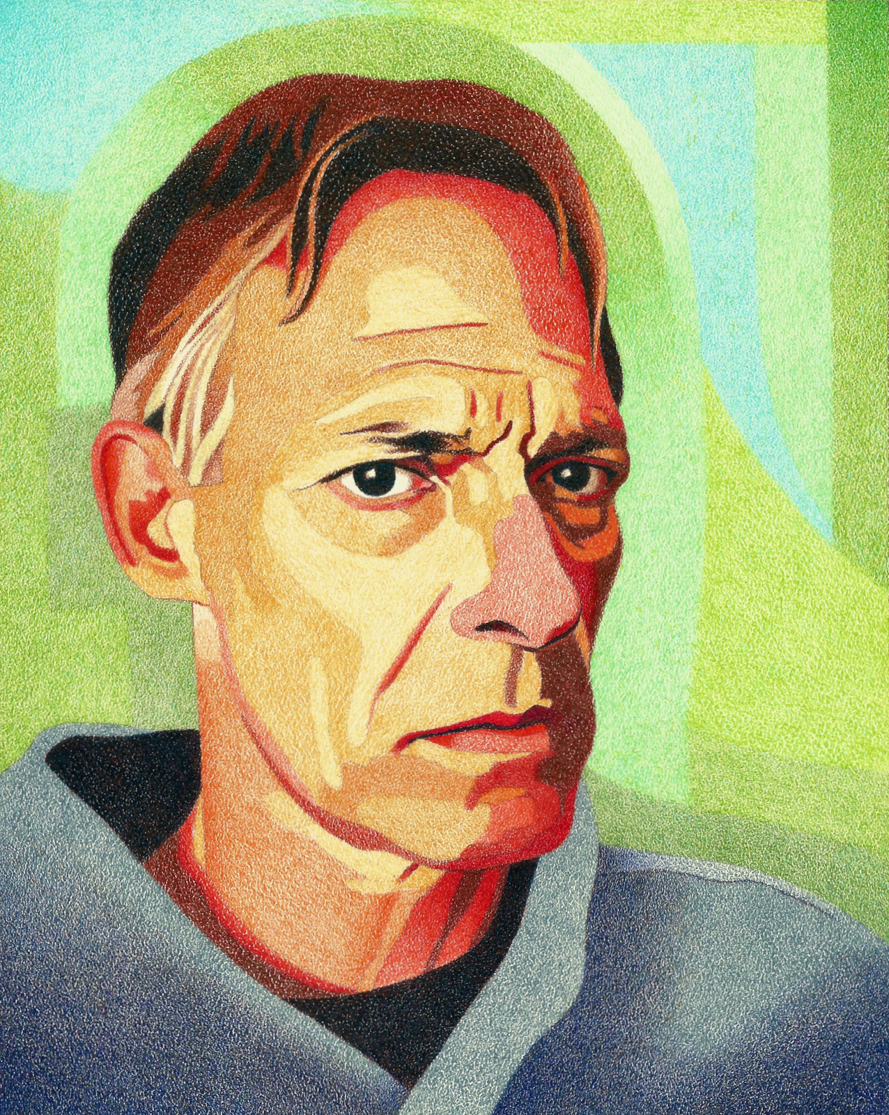 Self-Portrait with Green Background - Colored Pencil Drawing